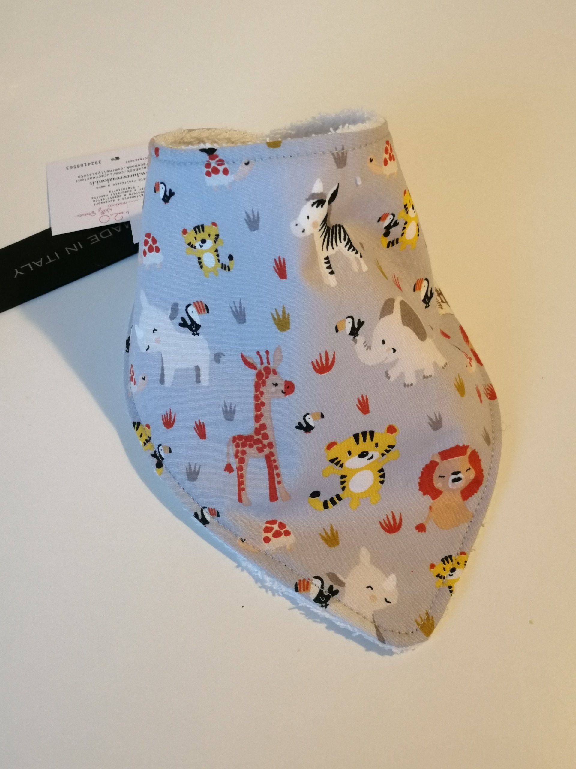 Bavaglini bandana in cotone certificato oeko-tex e spugna di cotone con bottoni clip clap in resina
