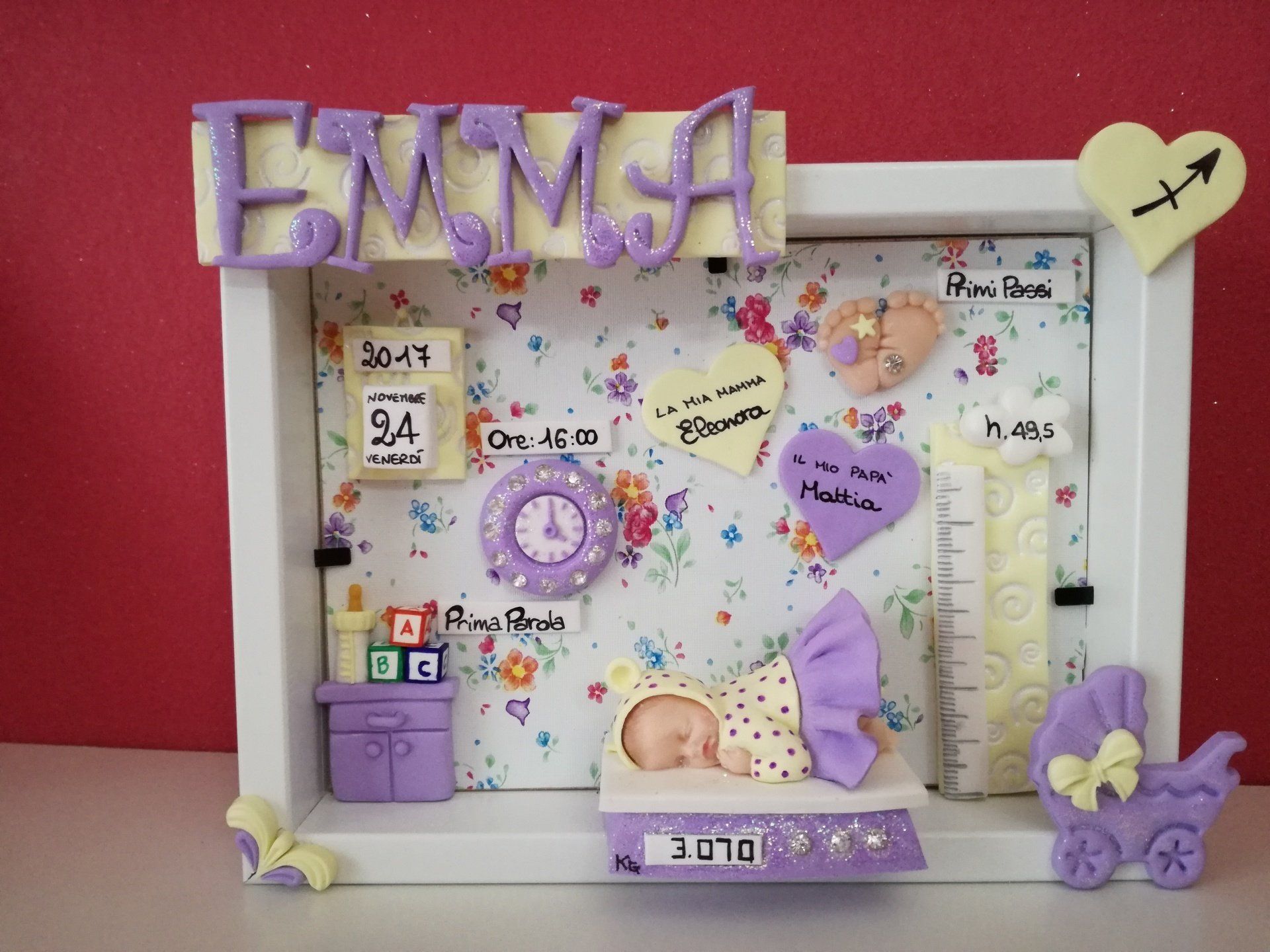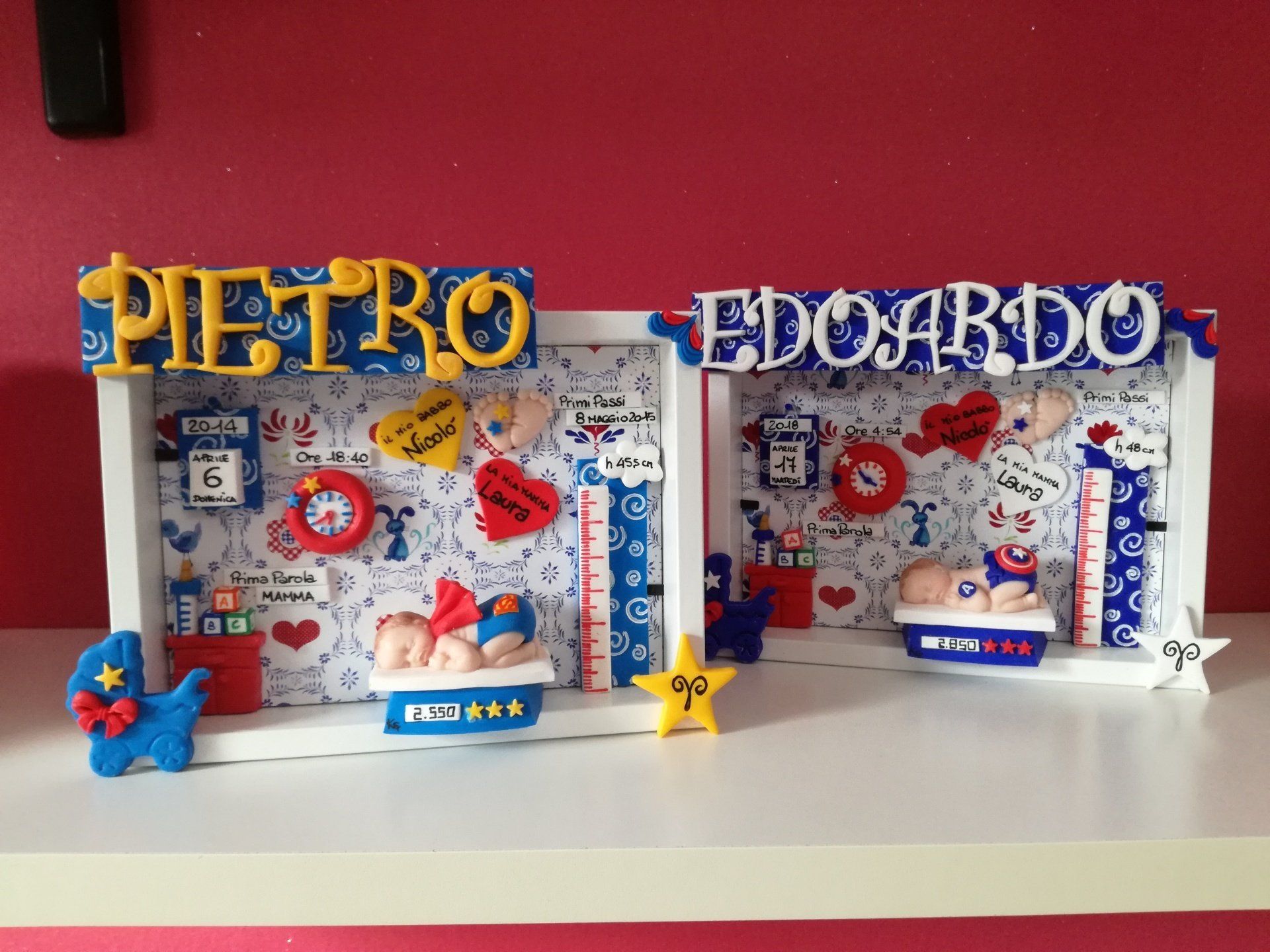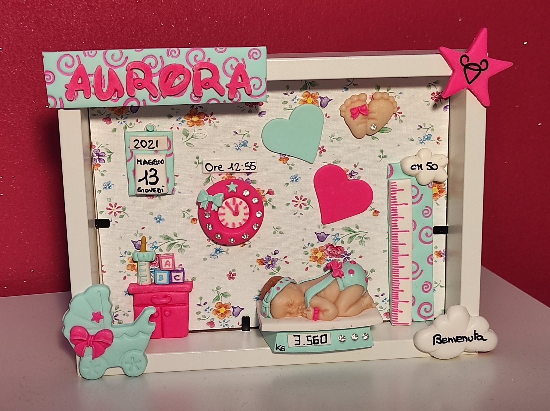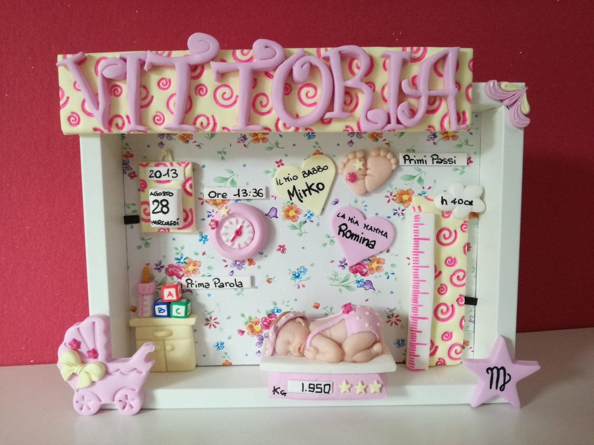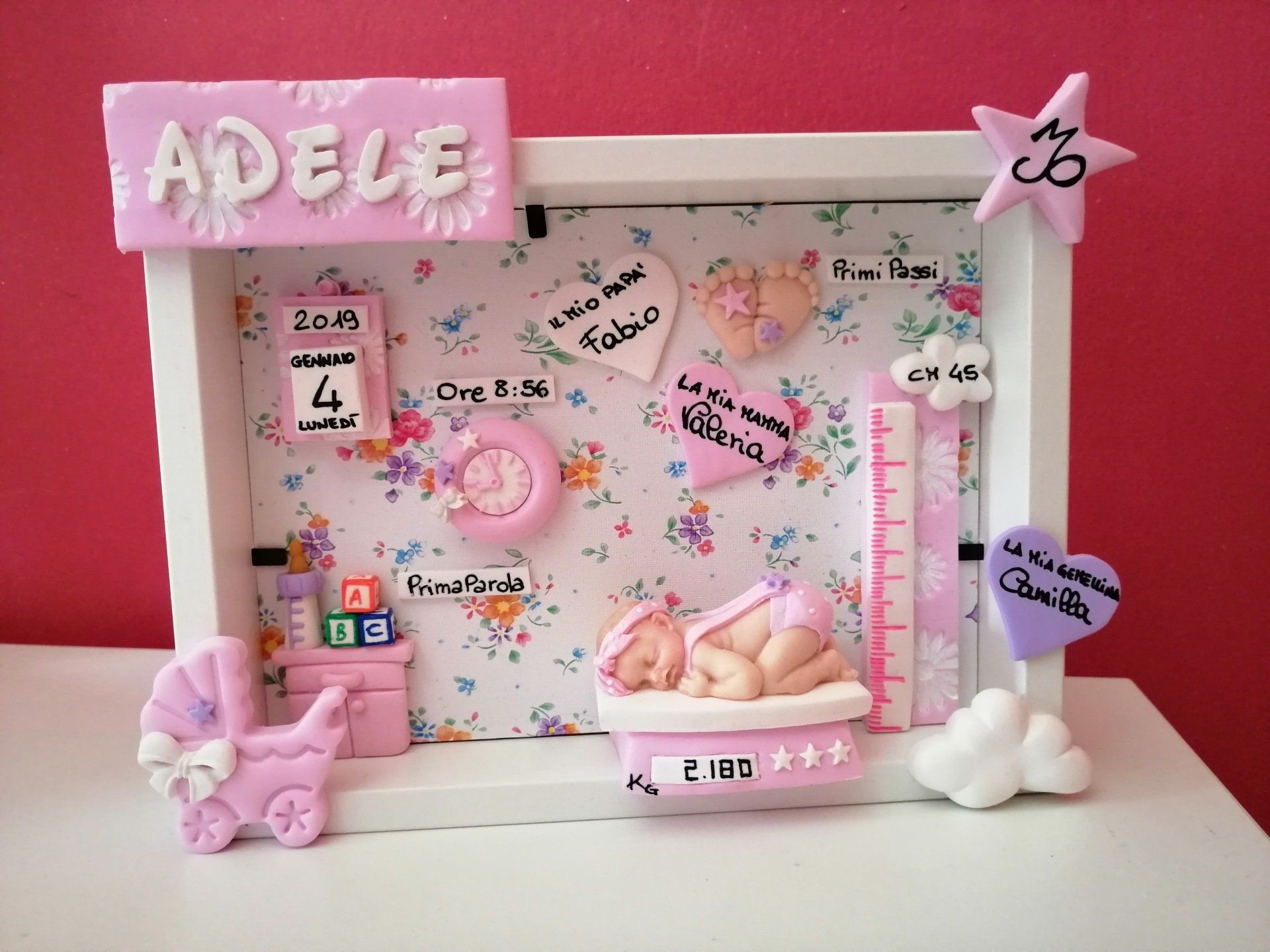 Quadretti nascita con nome,data, peso, altezza, segno zodiacale, primi passi, prima parola ... il formato big é un po' più grande del classico sia nel formato che nel nome e ha al suo interno i cuori per aggiungere il nome di mamma e papà oppure nonni, zii, padrino e madrina, o in alternativa potrete optare per il modello con primo dentino, in entrambe i casi un bel regalo adatto a tutti.