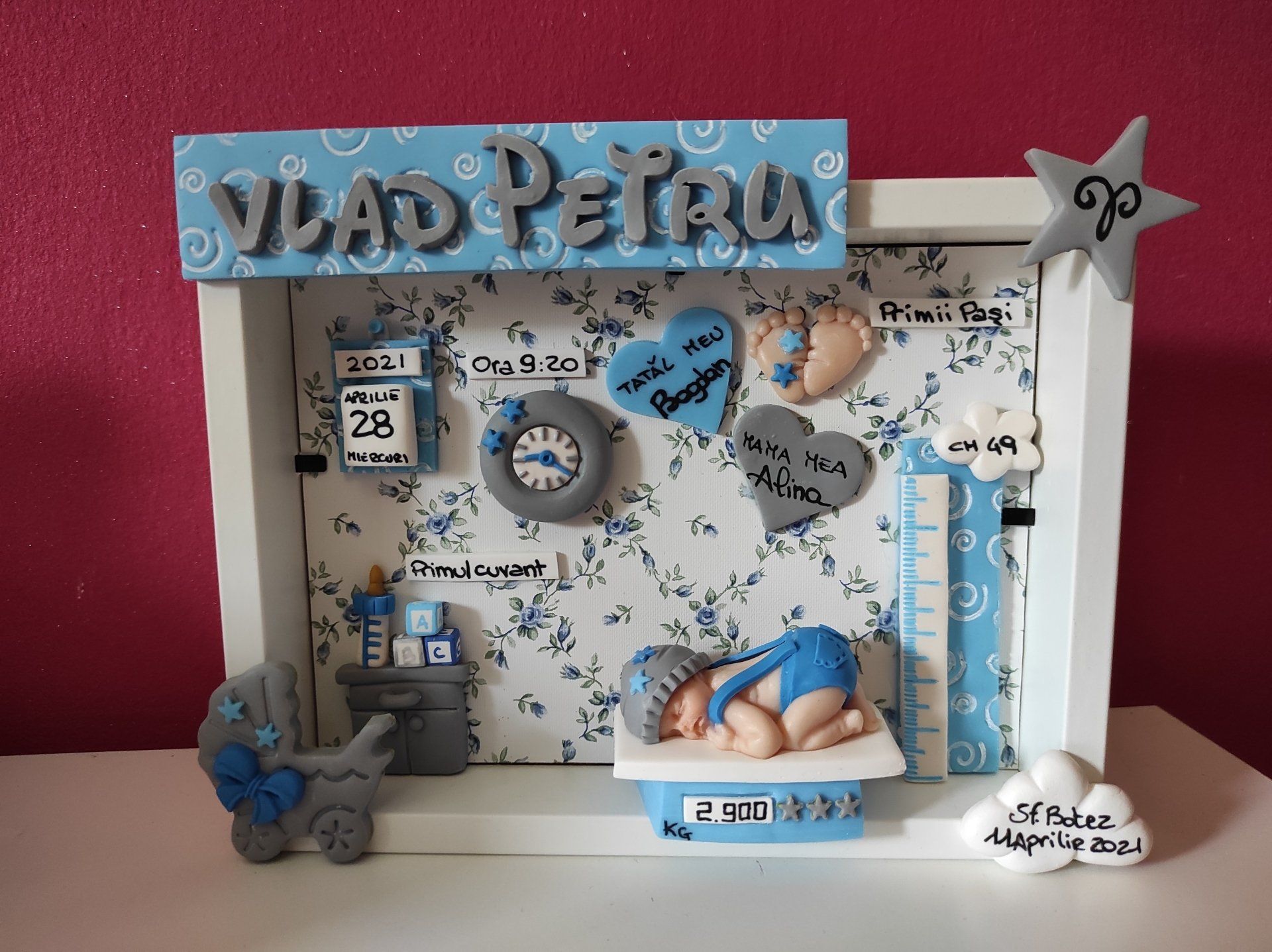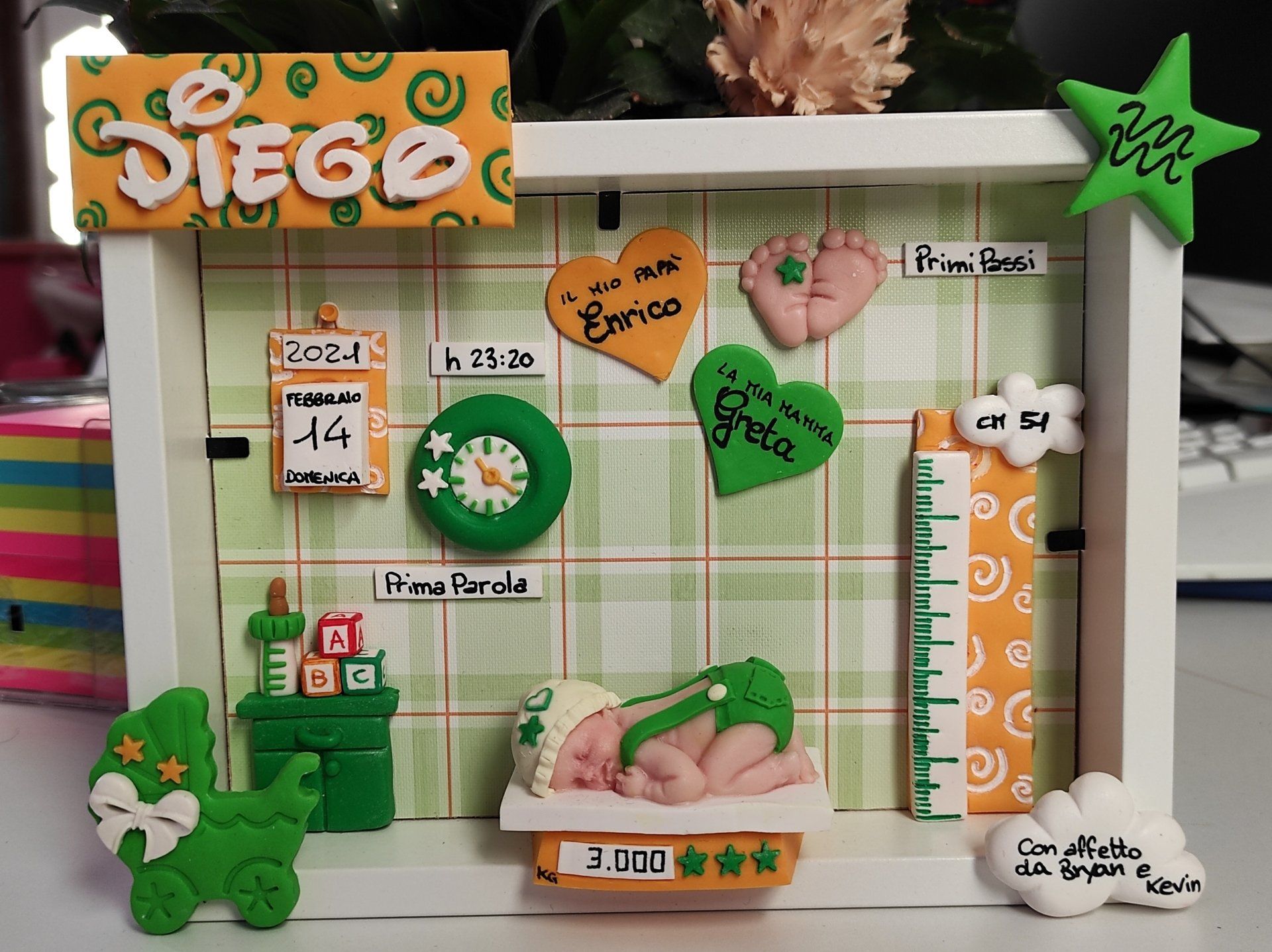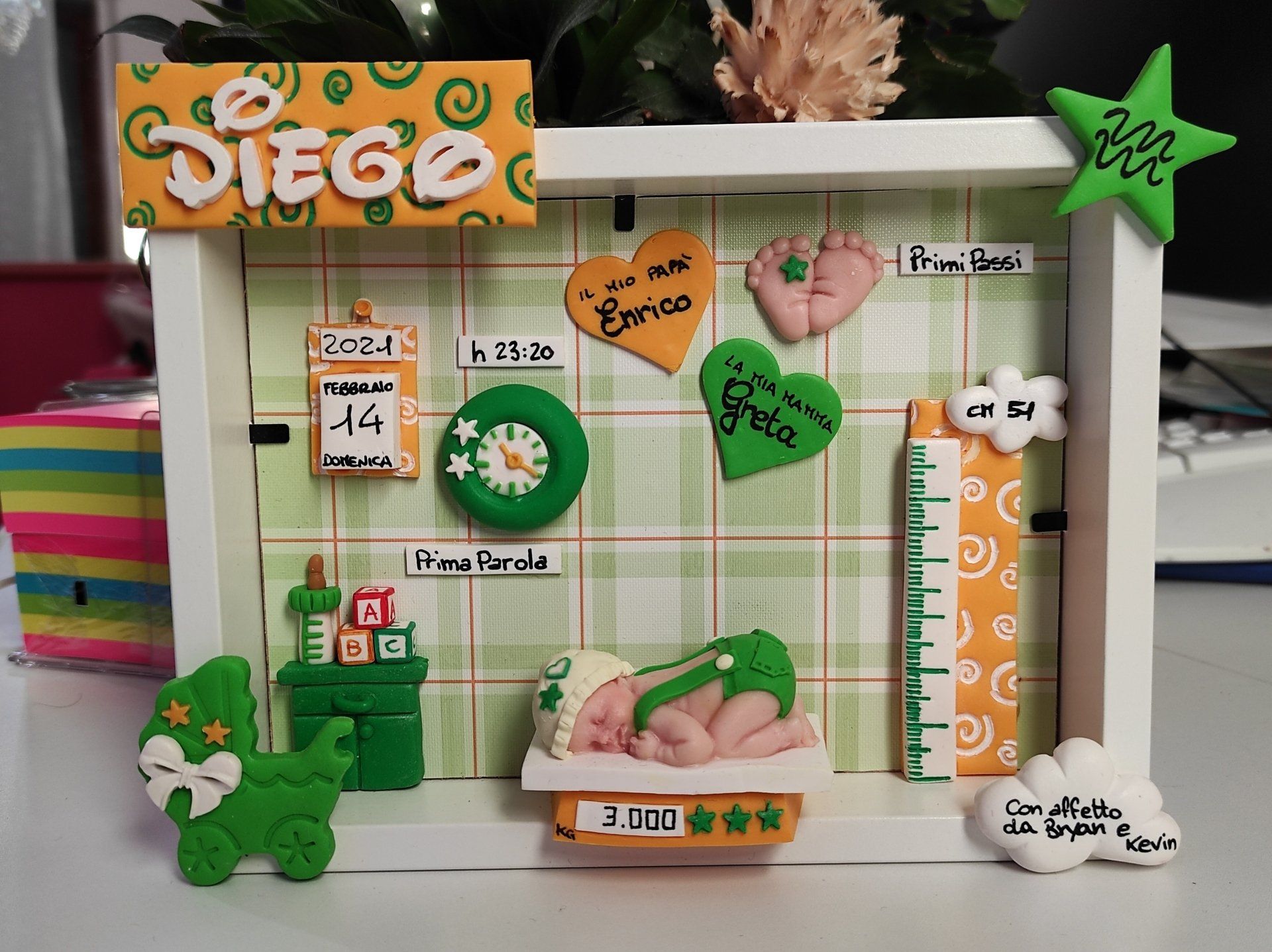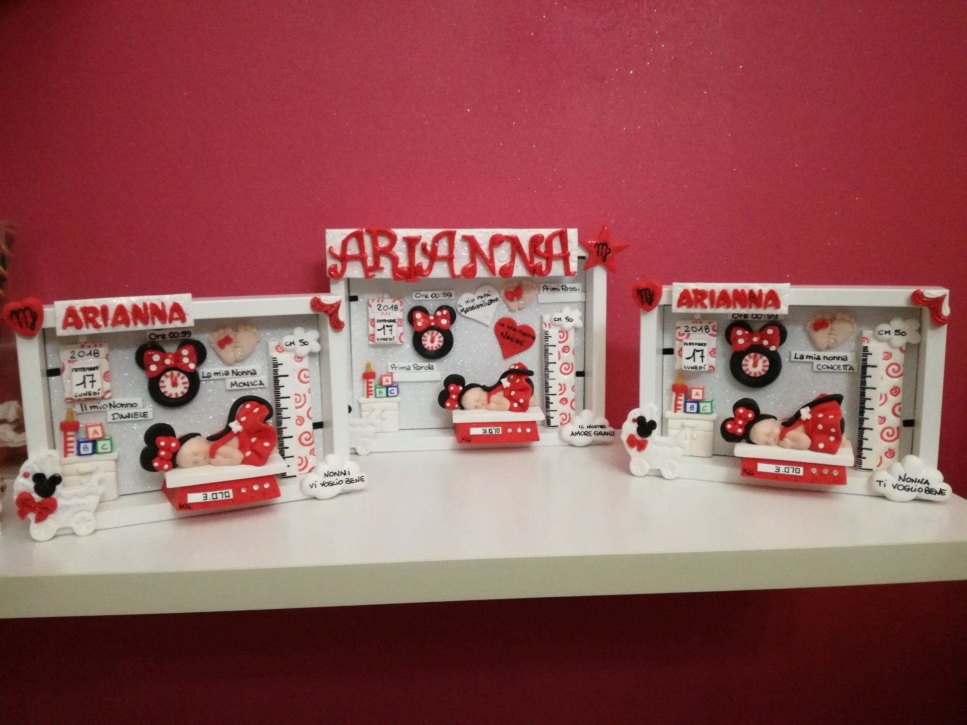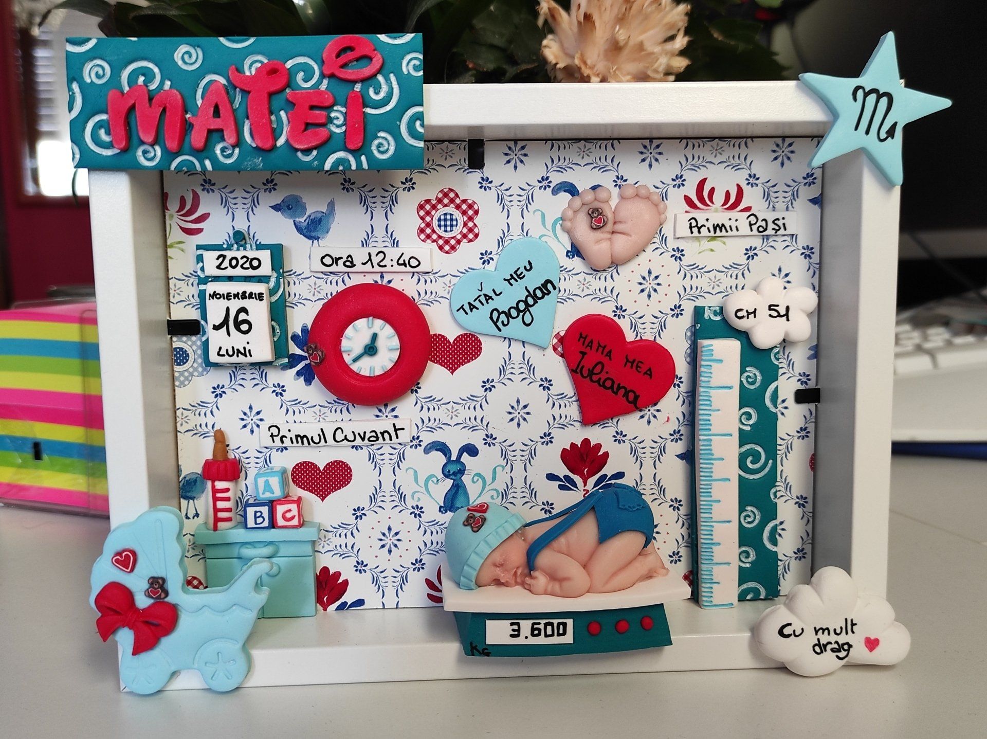 Quadretti nascita con nome,data, peso, altezza, segno zodiacale, primi passi, prima parola ... il formato big é un po' più grande del classico sia nel formato che nel nome e ha al suo interno i cuori per aggiungere il nome di mamma e papà oppure nonni, zii, padrino e madrina, o in alternativa potrete optare per il modello con primo dentino, in entrambe i casi un bel regalo adatto a tutti.