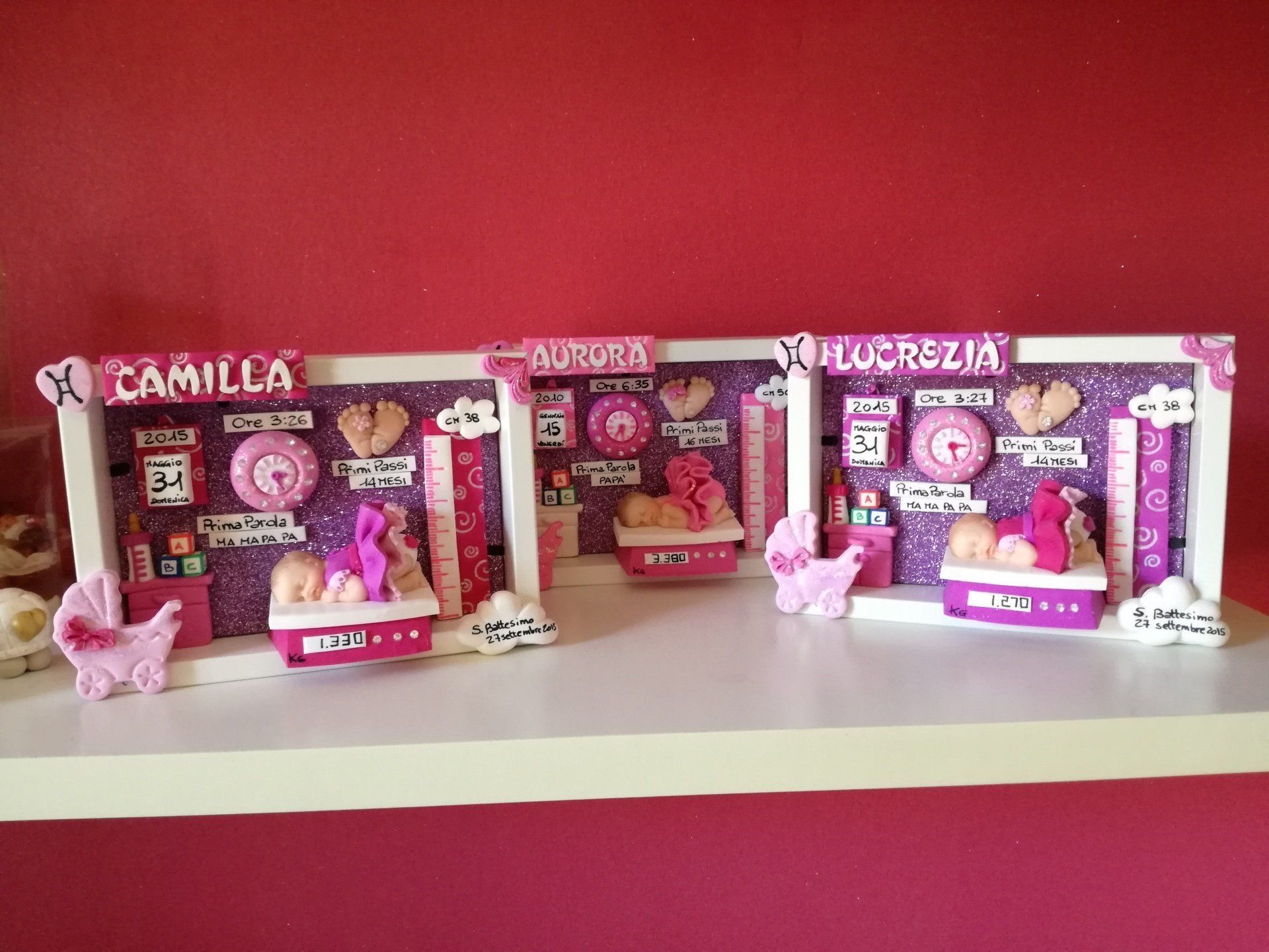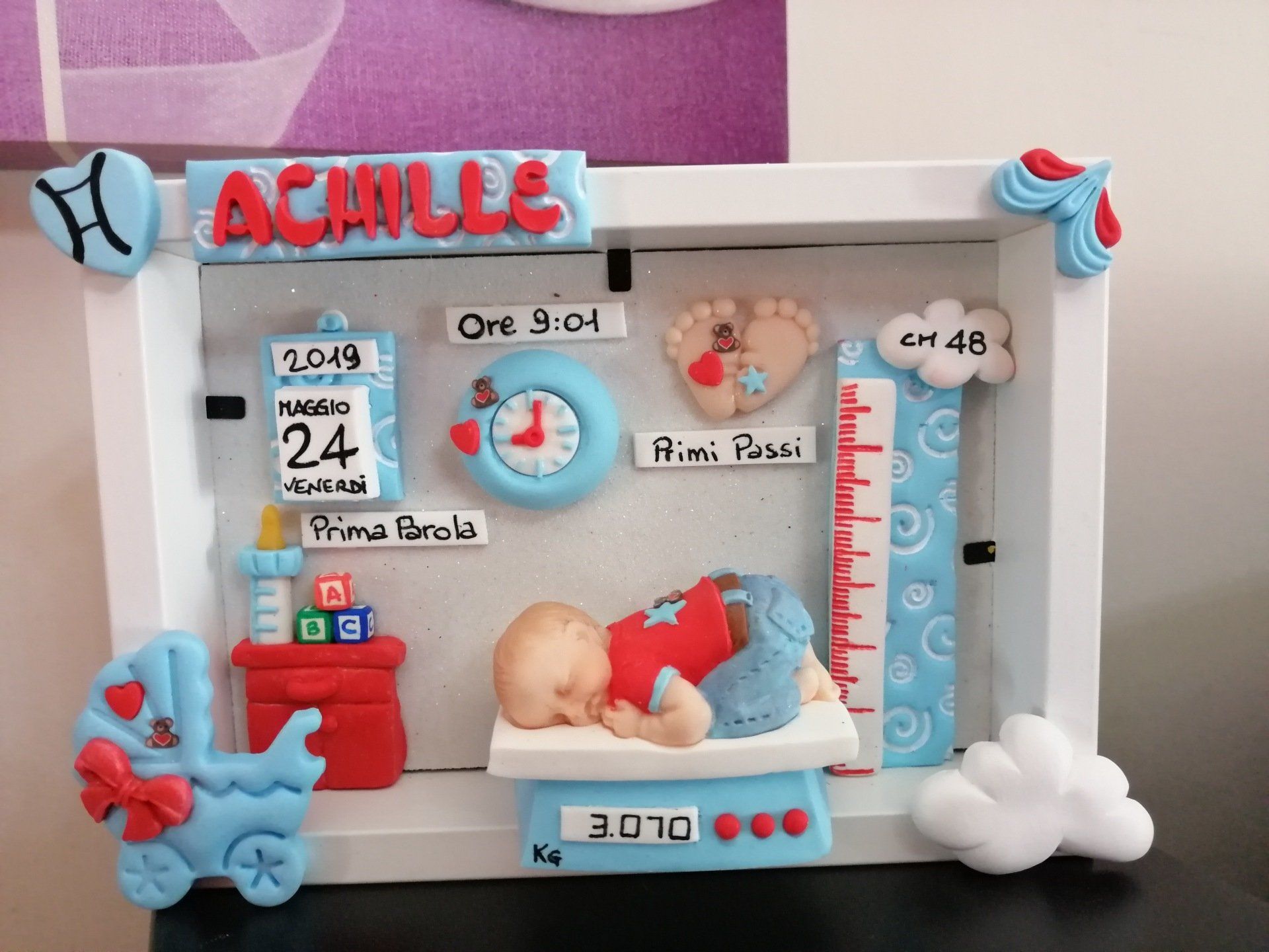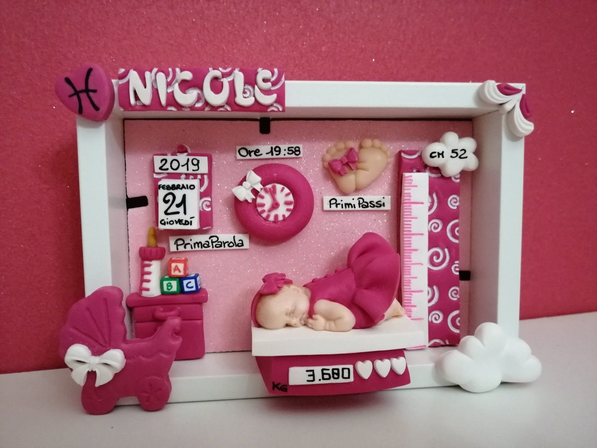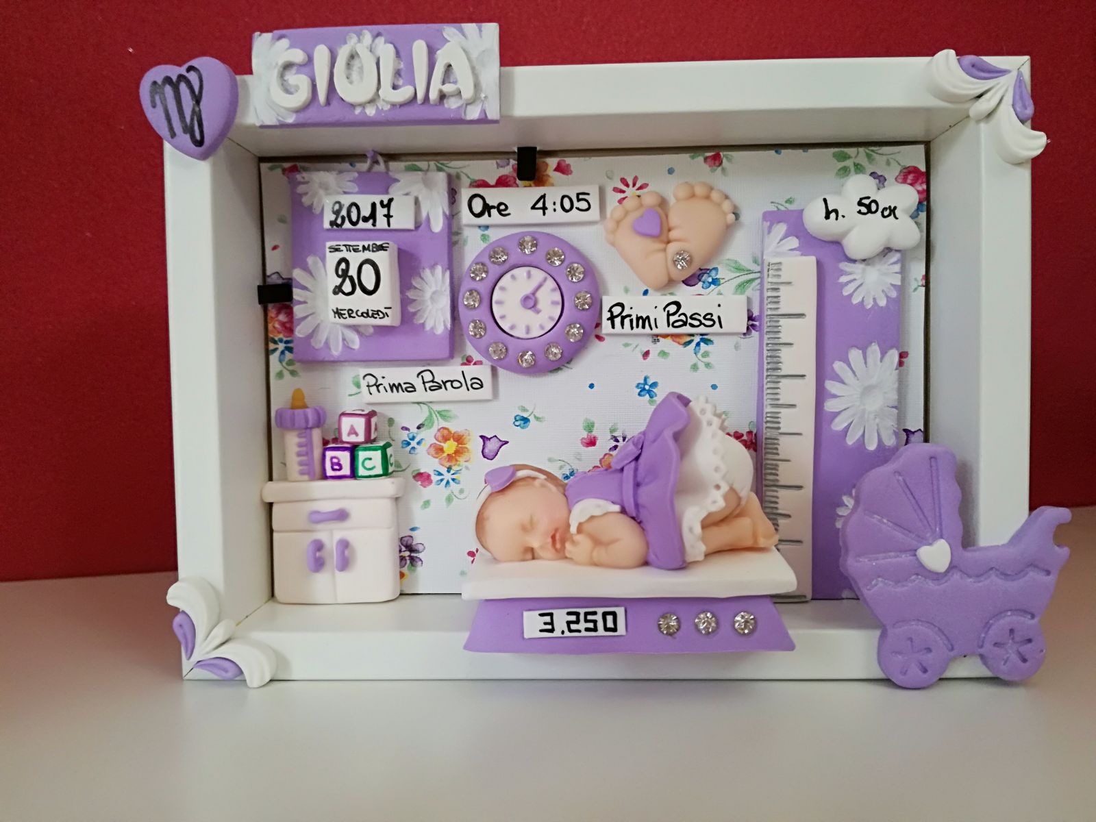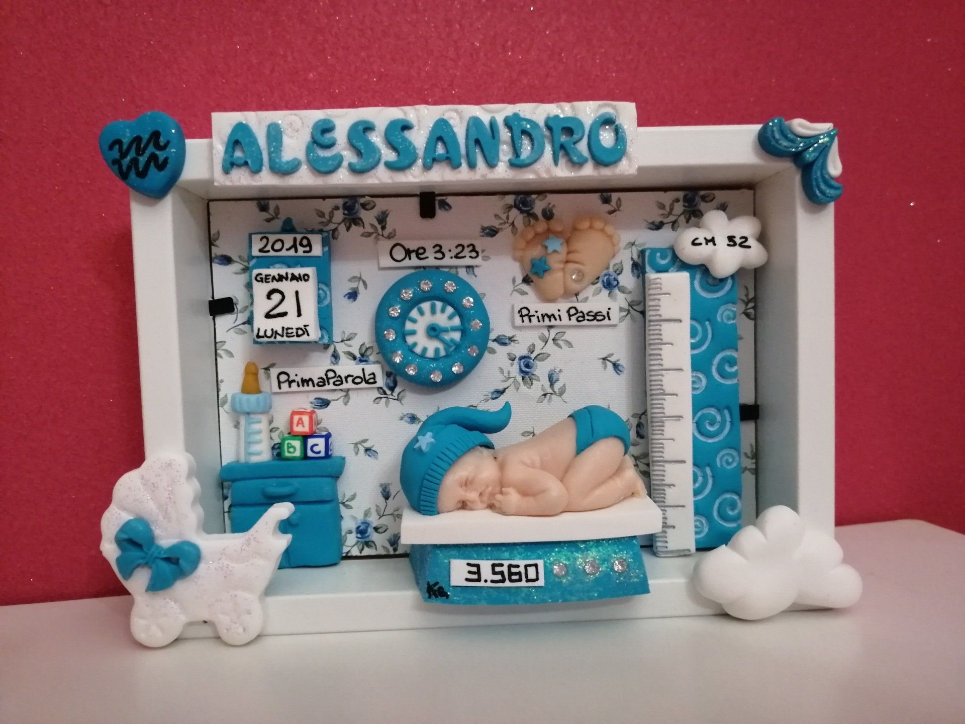 Quadretti nascita con nome,data, peso, altezza, segno zodiacale, primi passi, prima parola ...