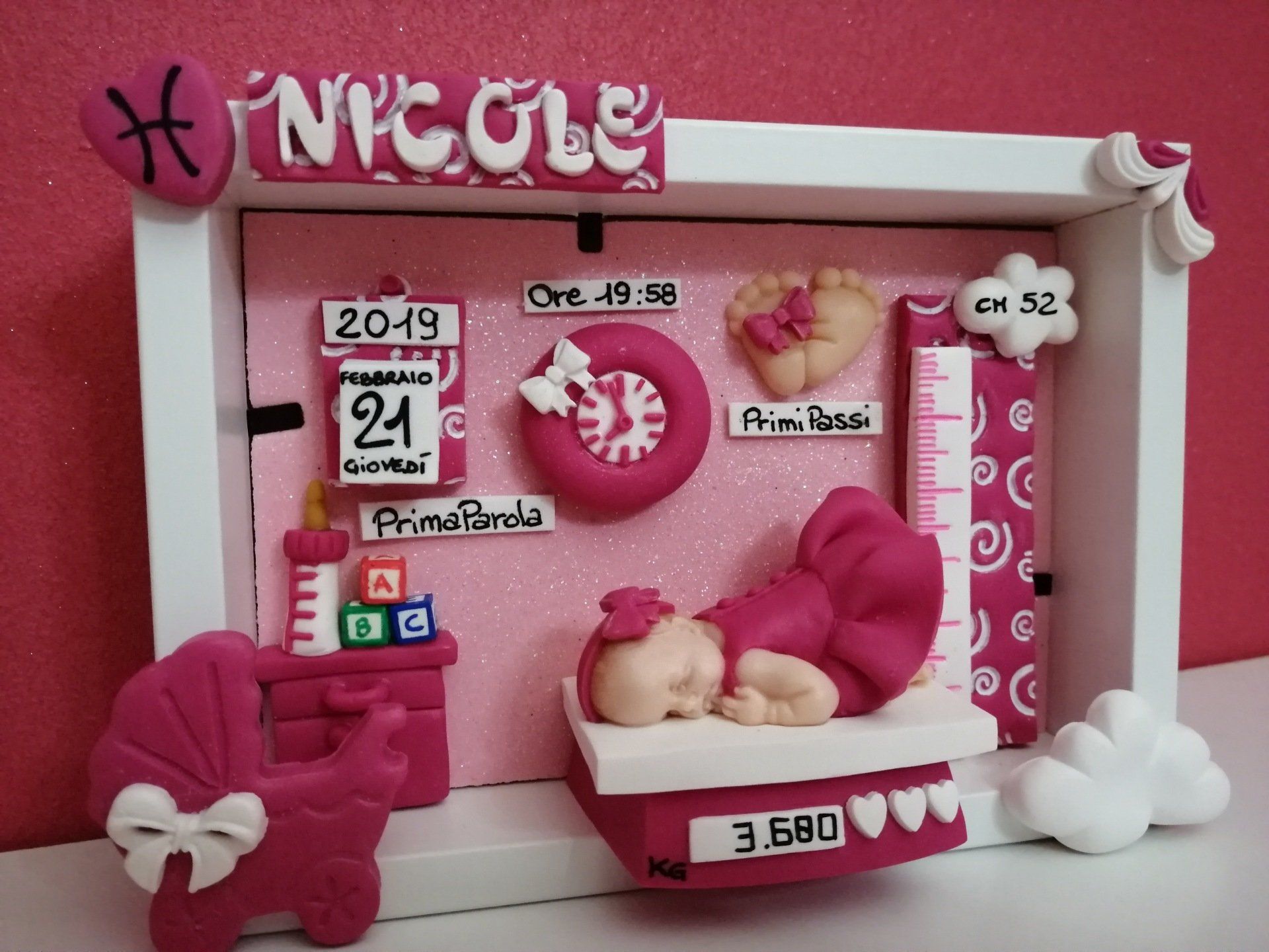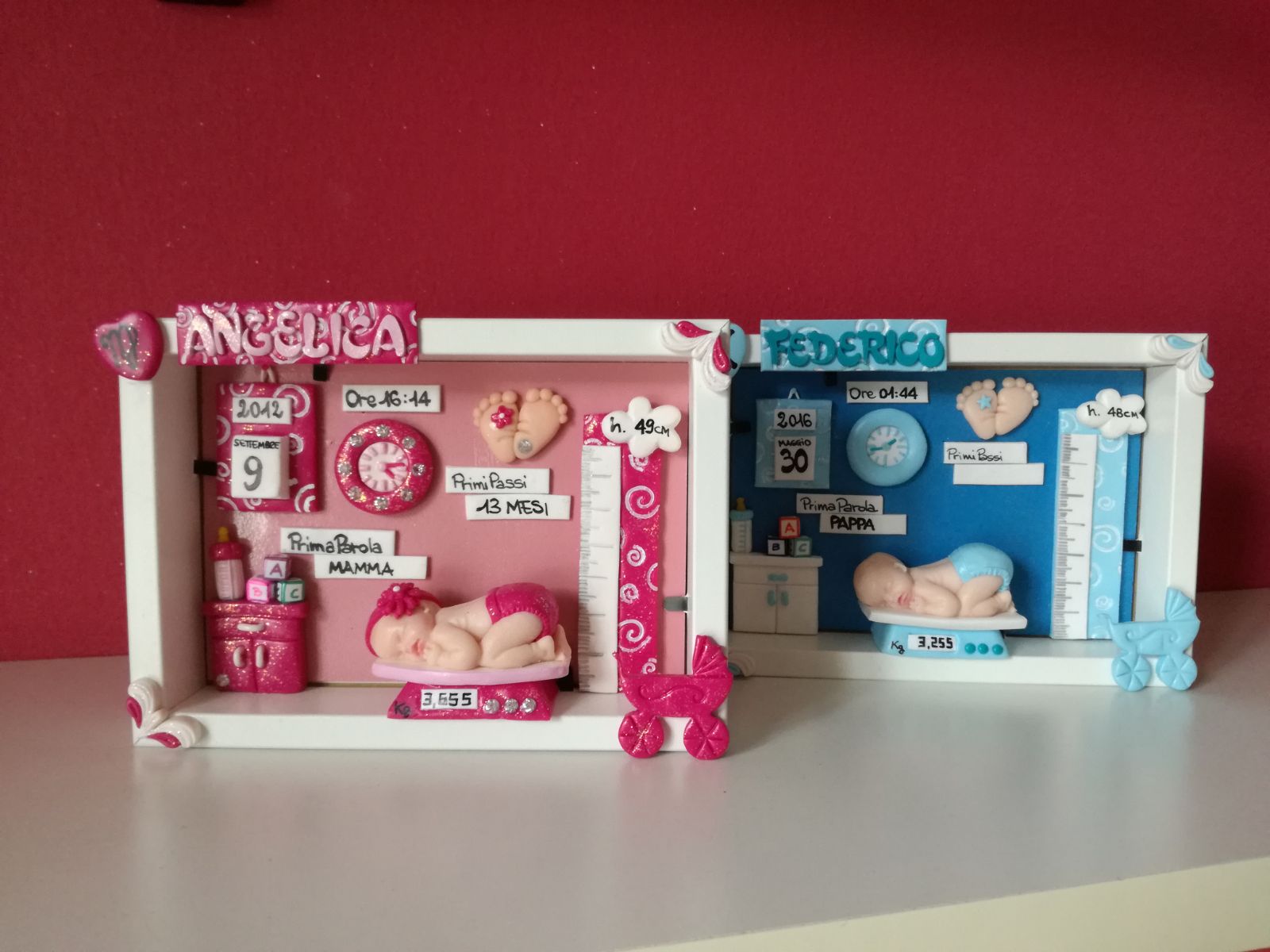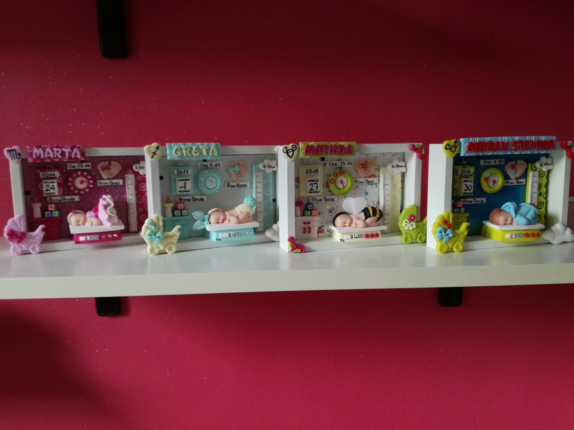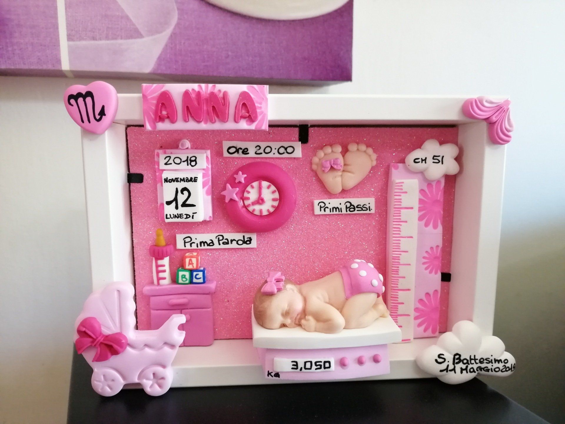 Quadretti nascita con nome,data, peso, altezza, segno zodiacale, primi passi, prima parola ...