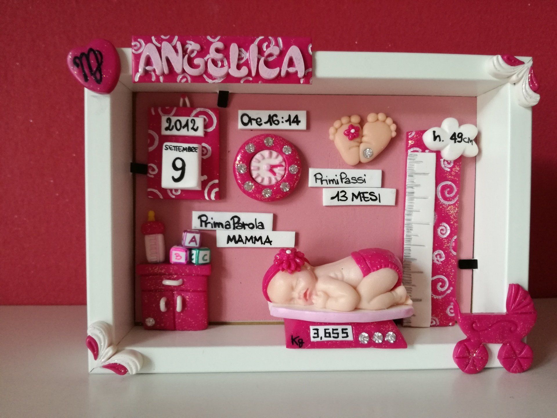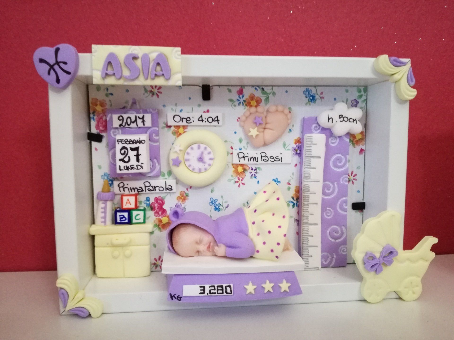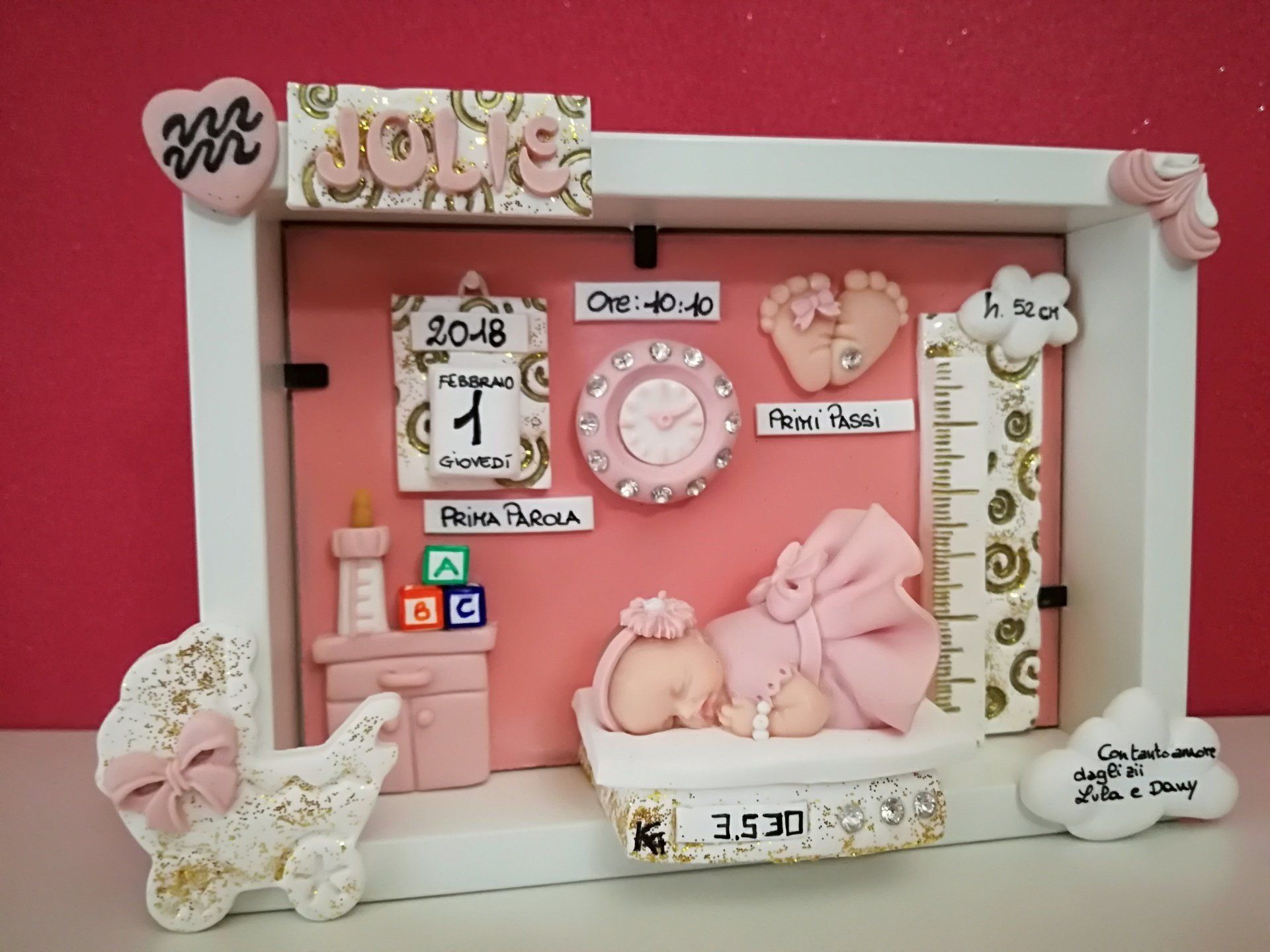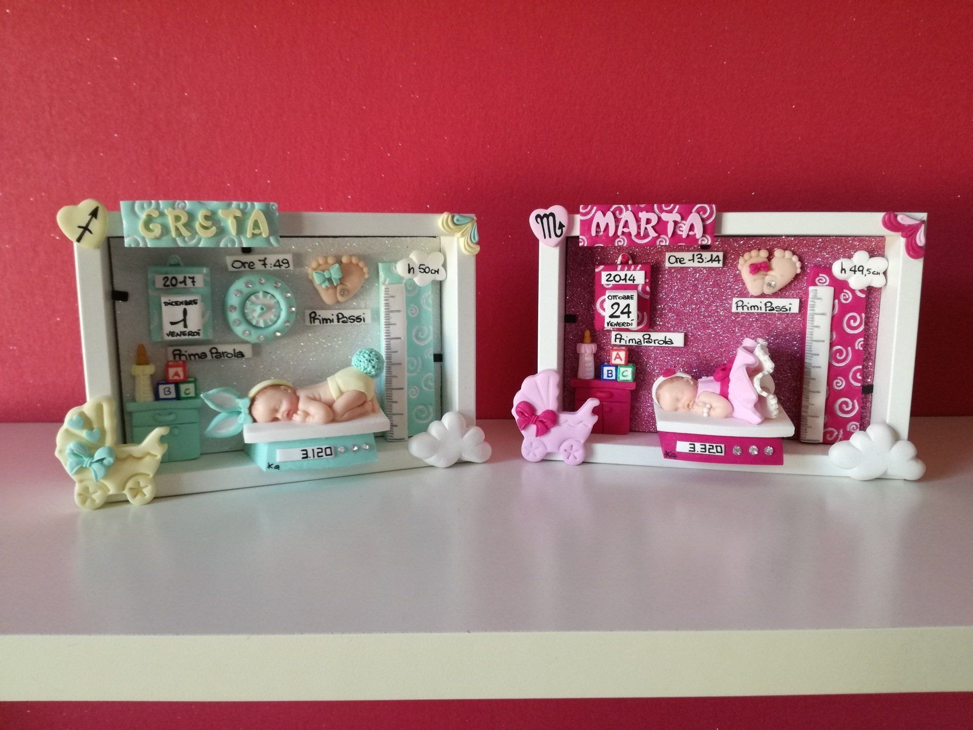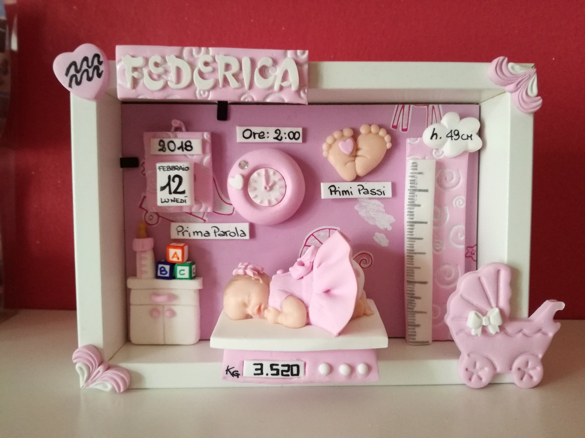 Quadretti nascita con nome,data, peso, altezza, segno zodiacale, primi passi, prima parola ...