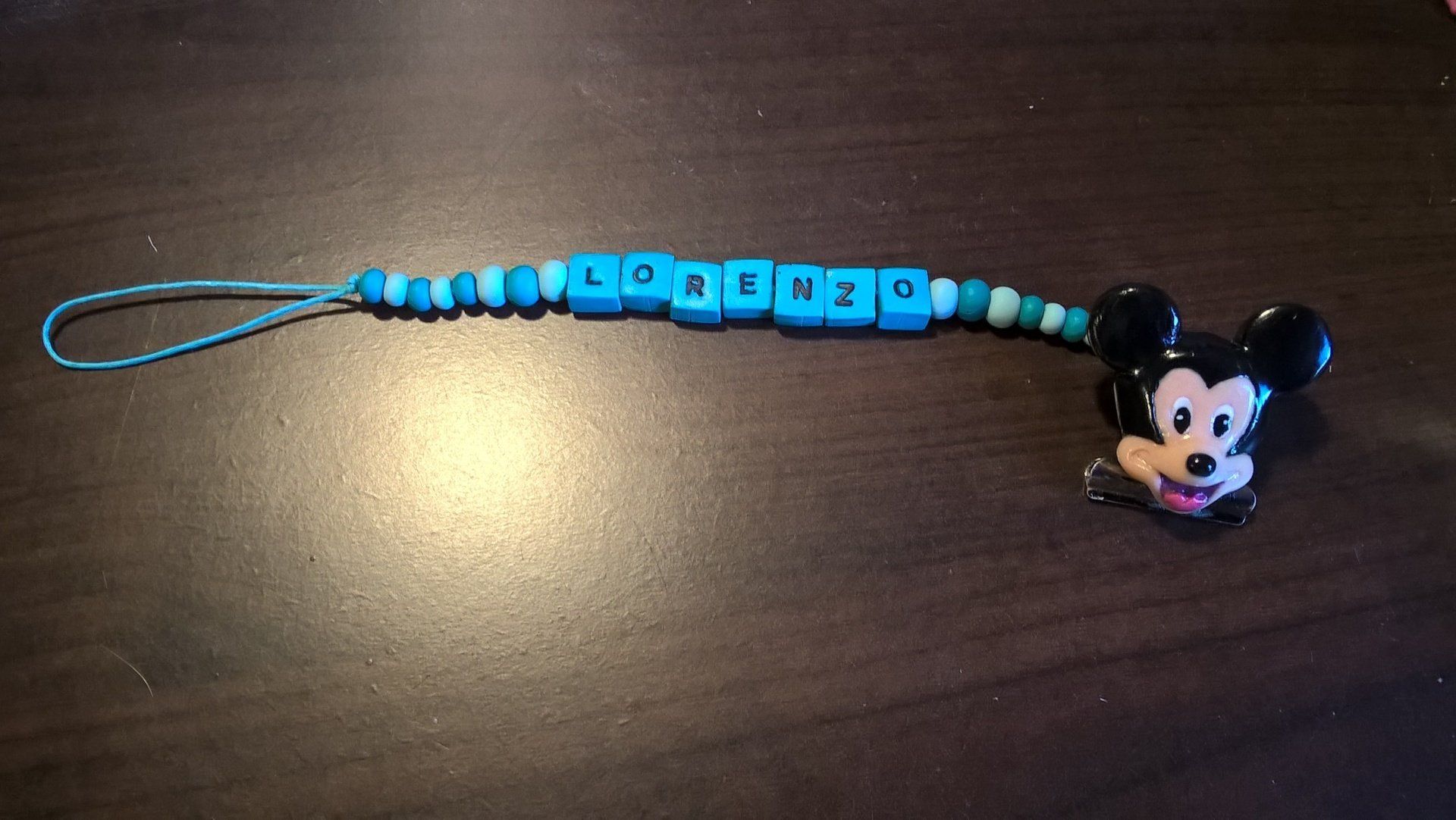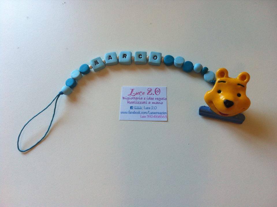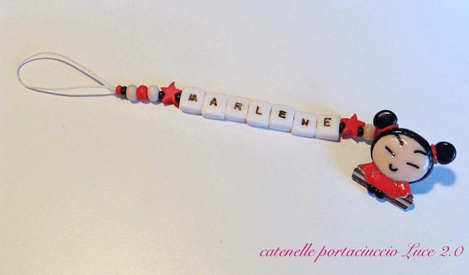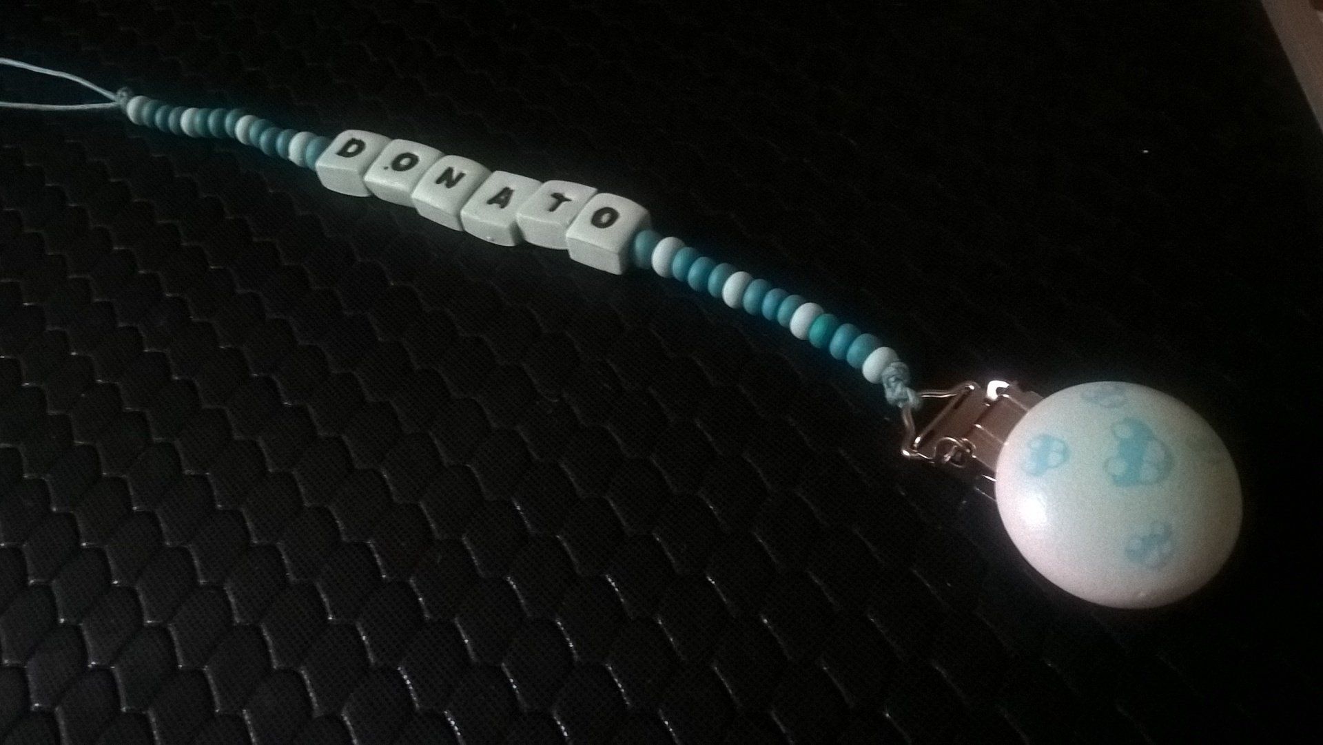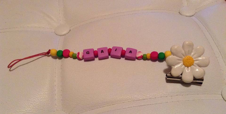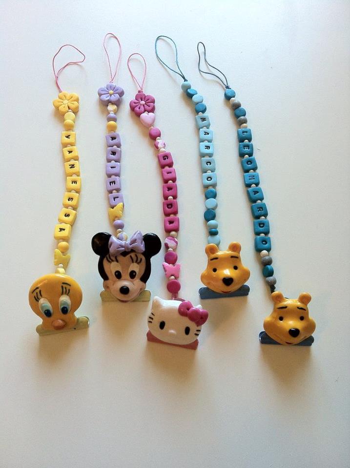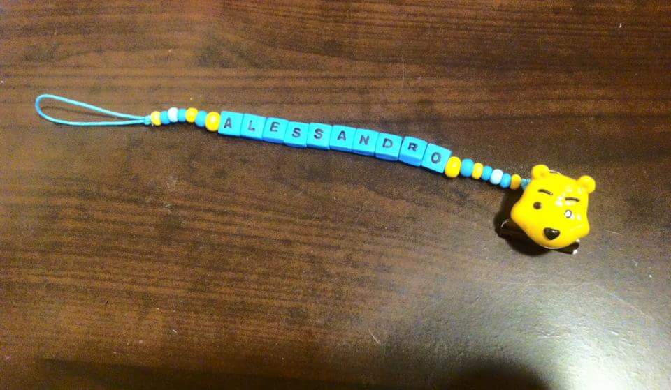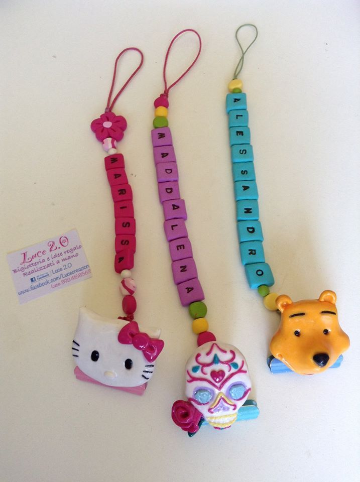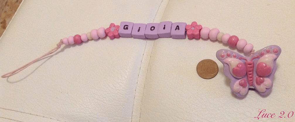 Catenelle portaciuccio lucecreazioni realizzate interamente a mano, dalla pinza alla catenella, letterine e tutti i componenti compresi