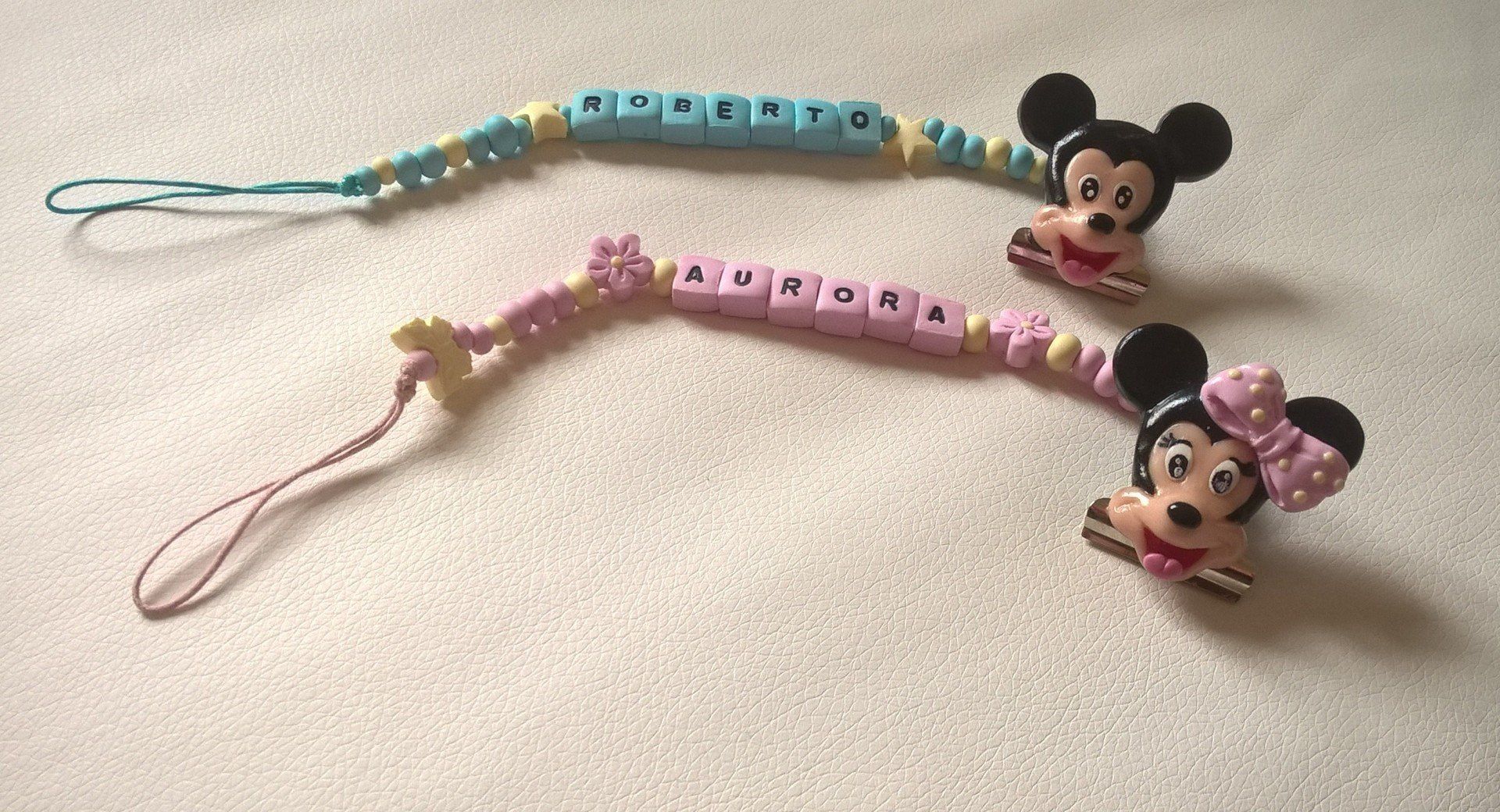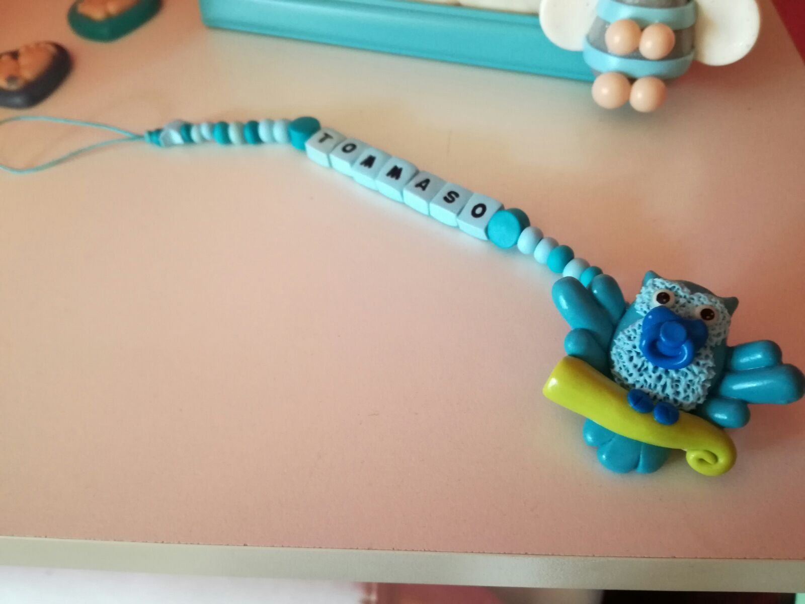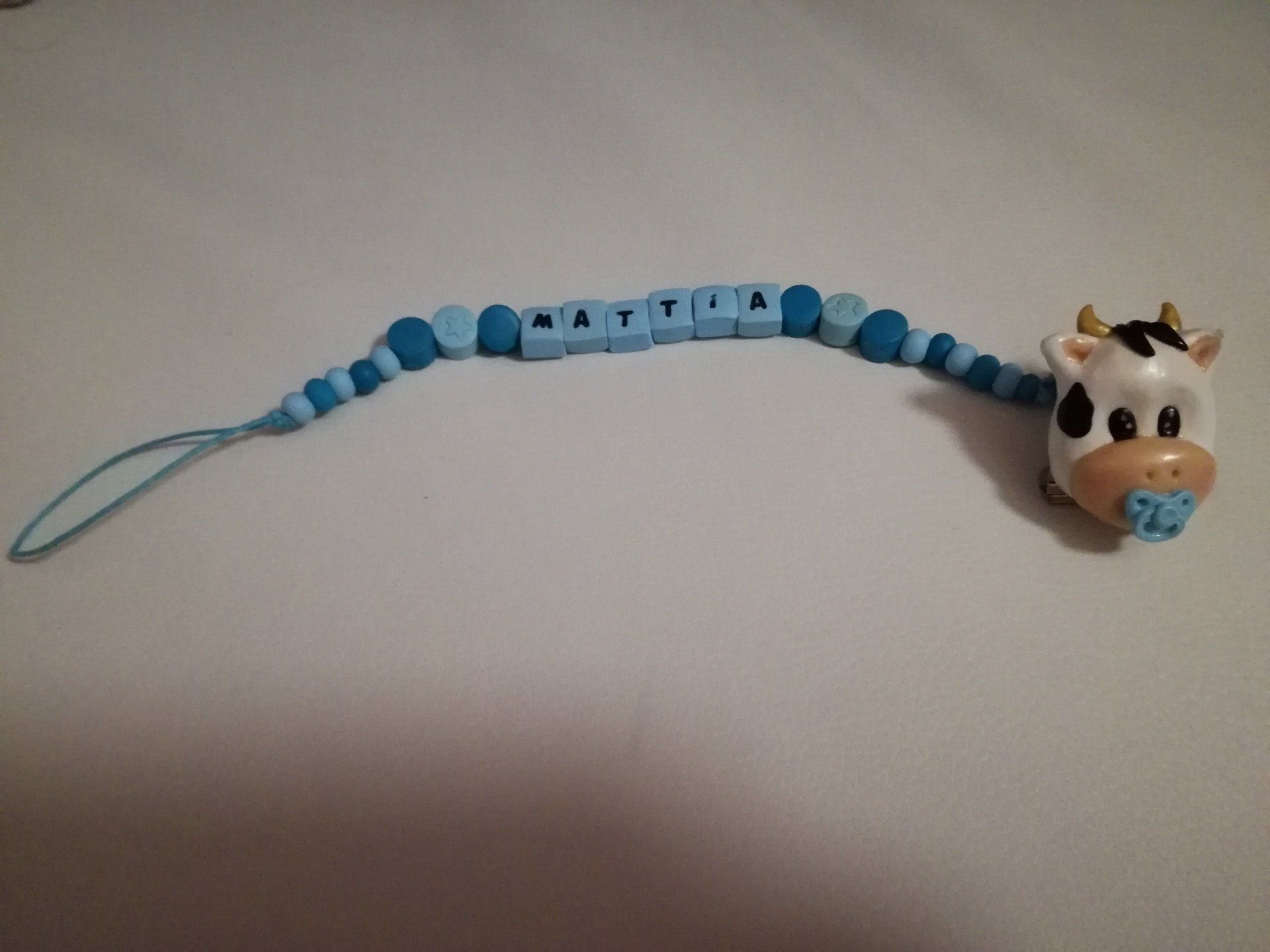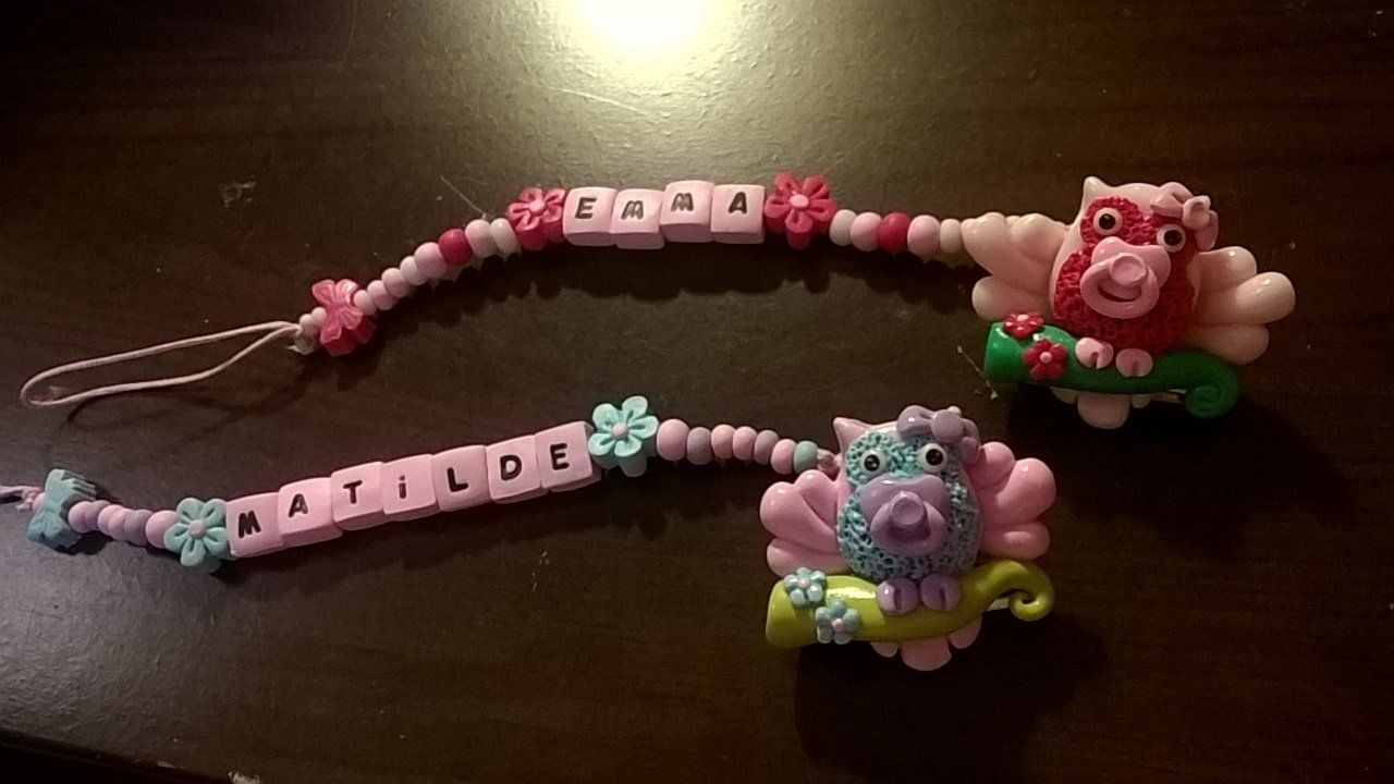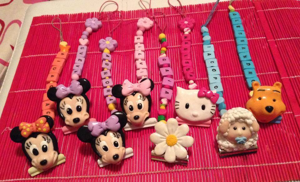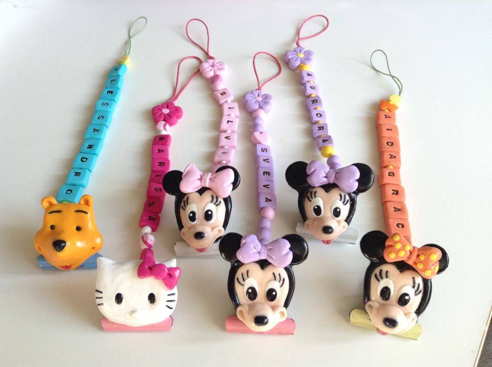 Catenelle portaciuccio lucecreazioni realizzate interamente a mano, dalla pinza alla catenella, letterine e tutti i componenti compresi