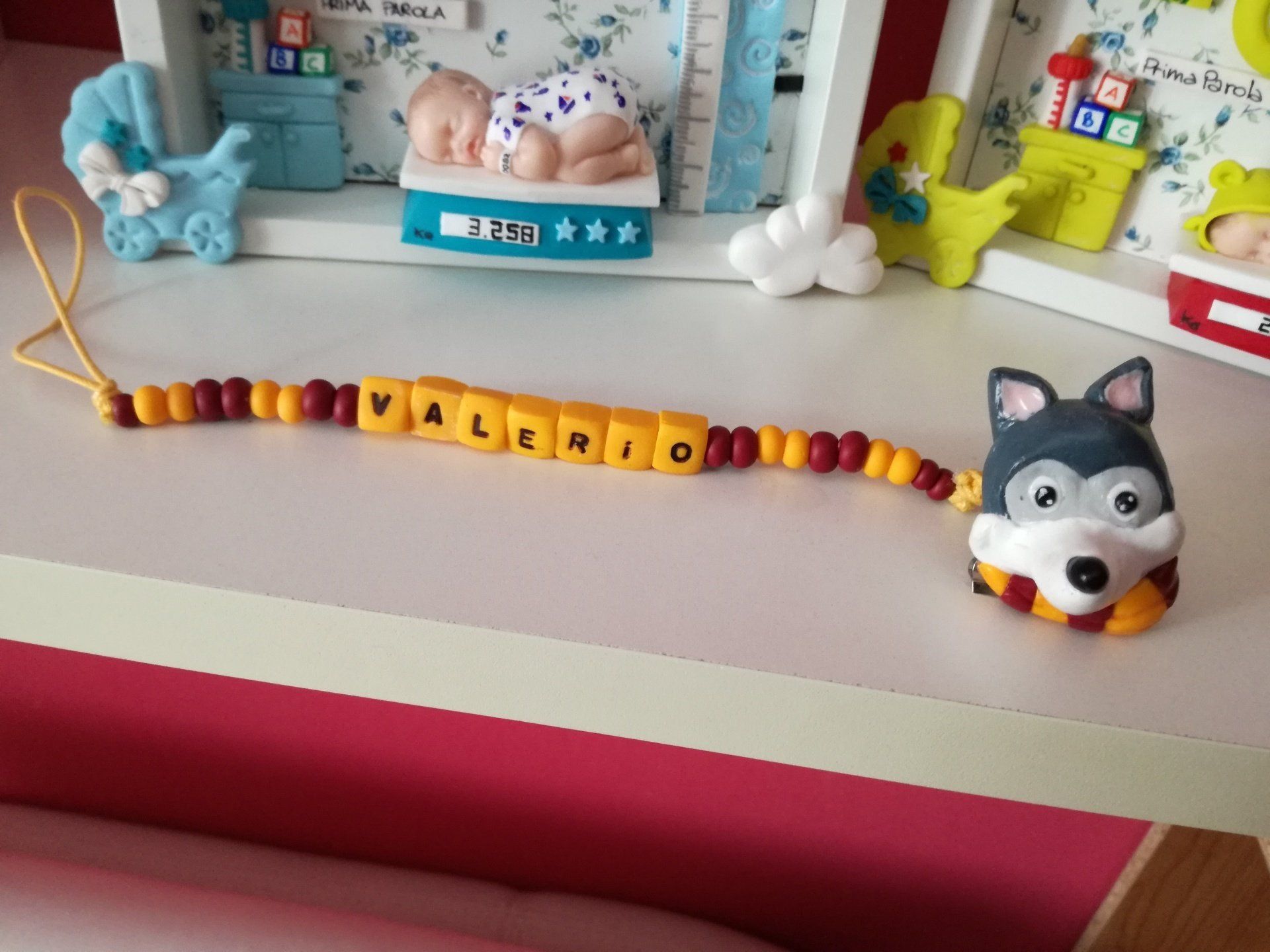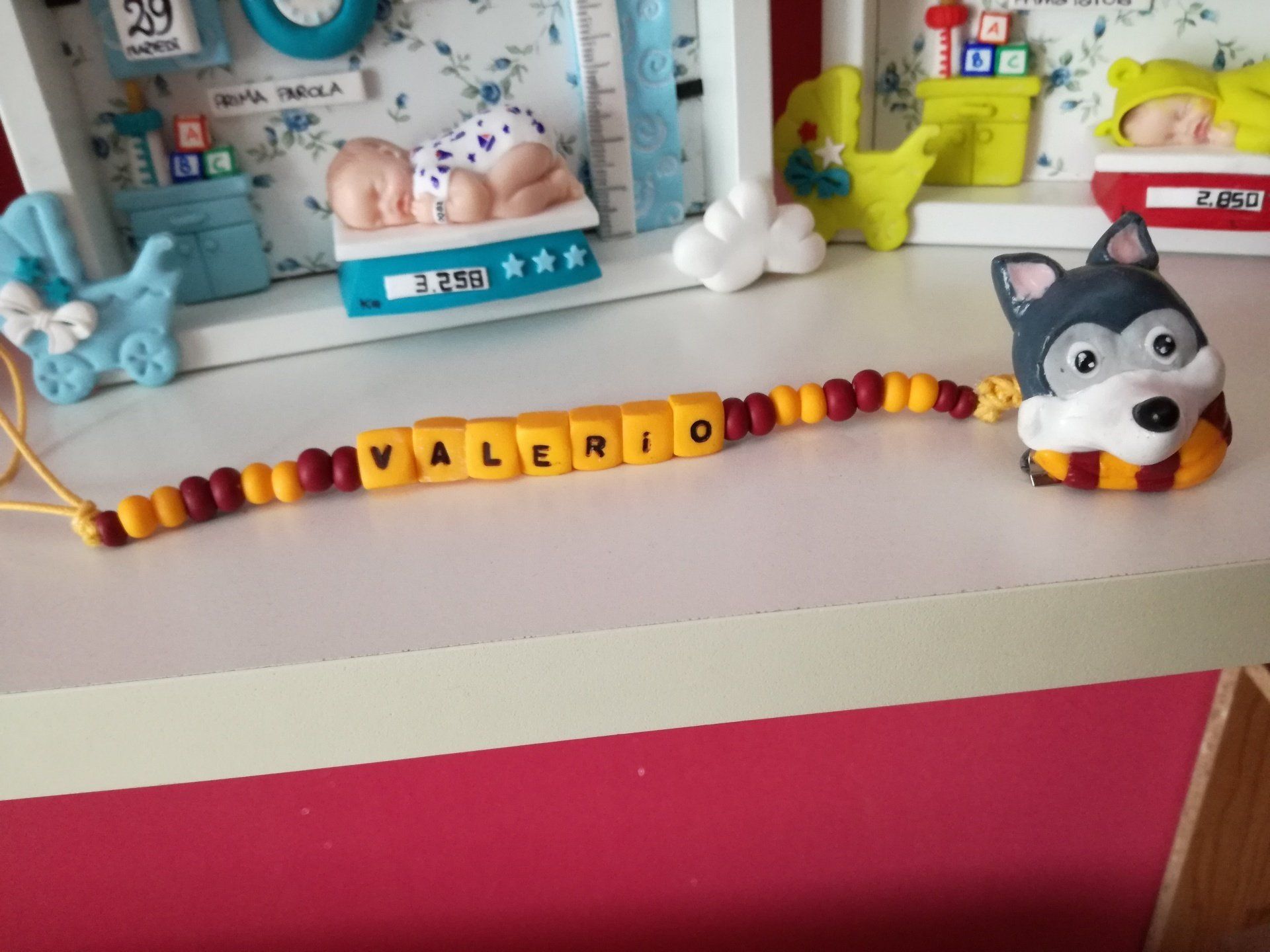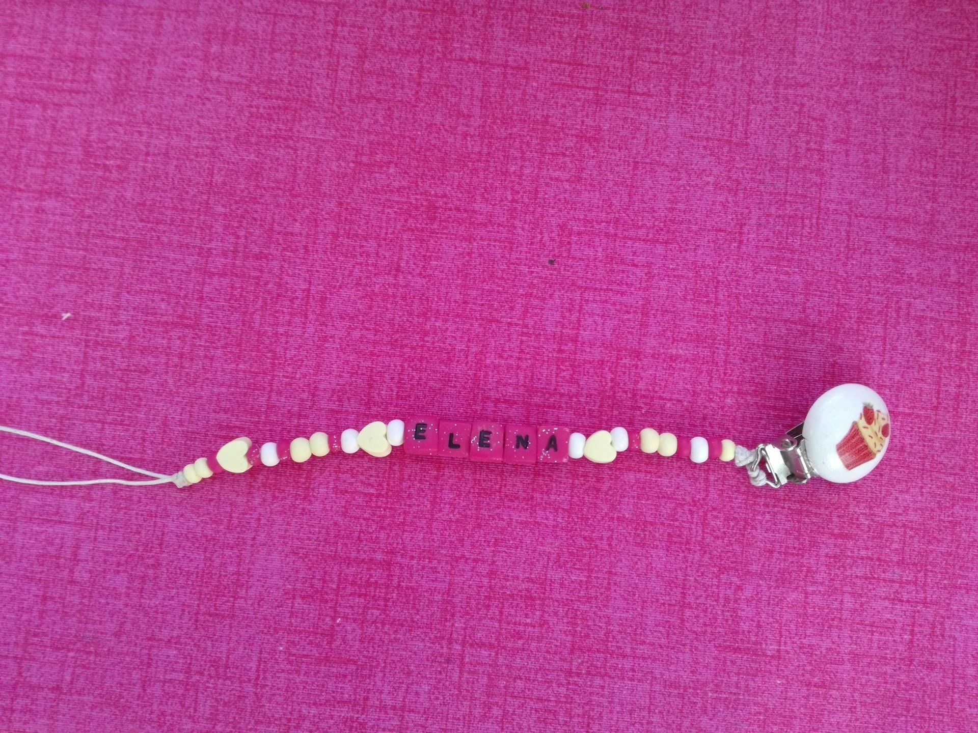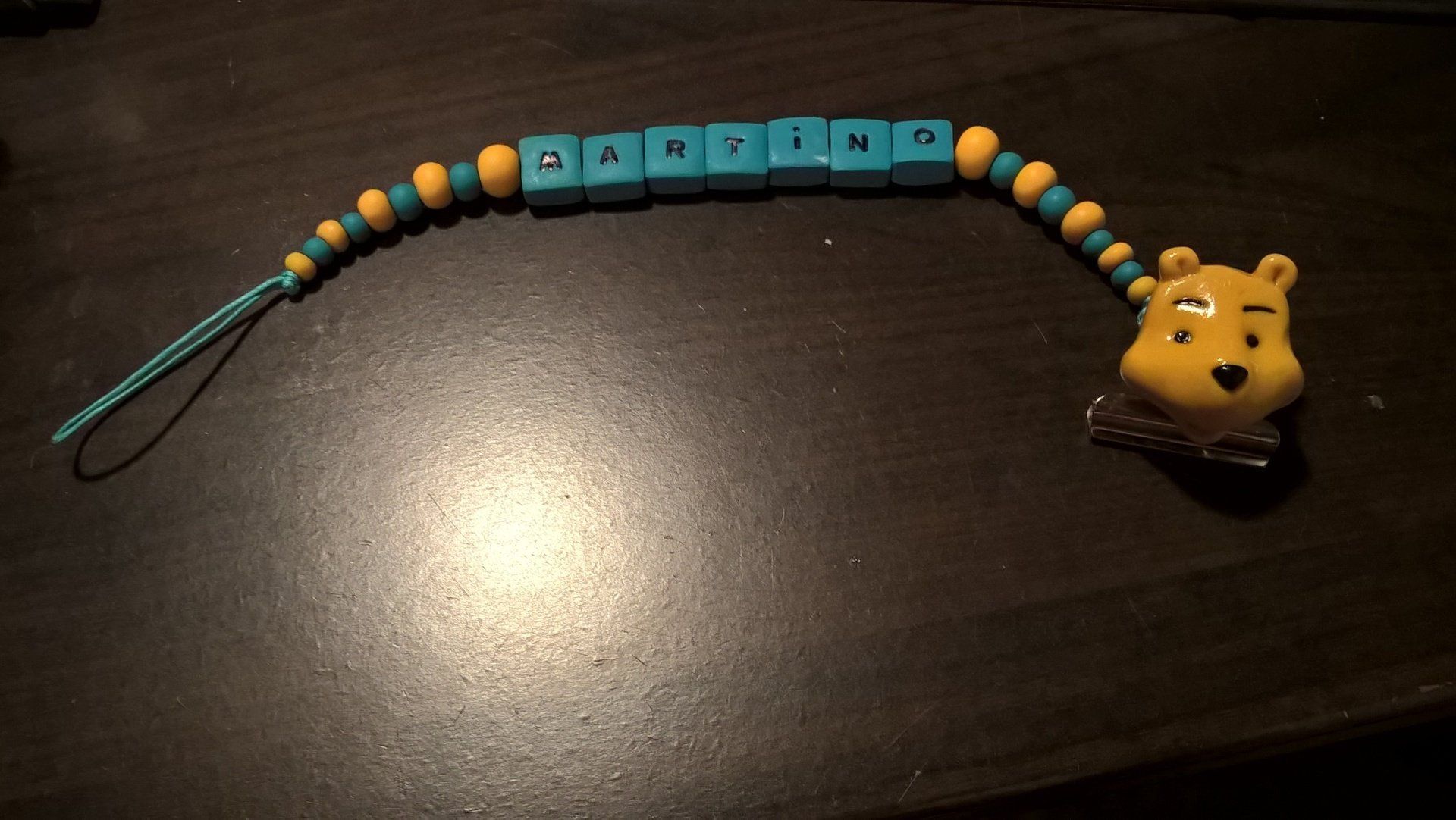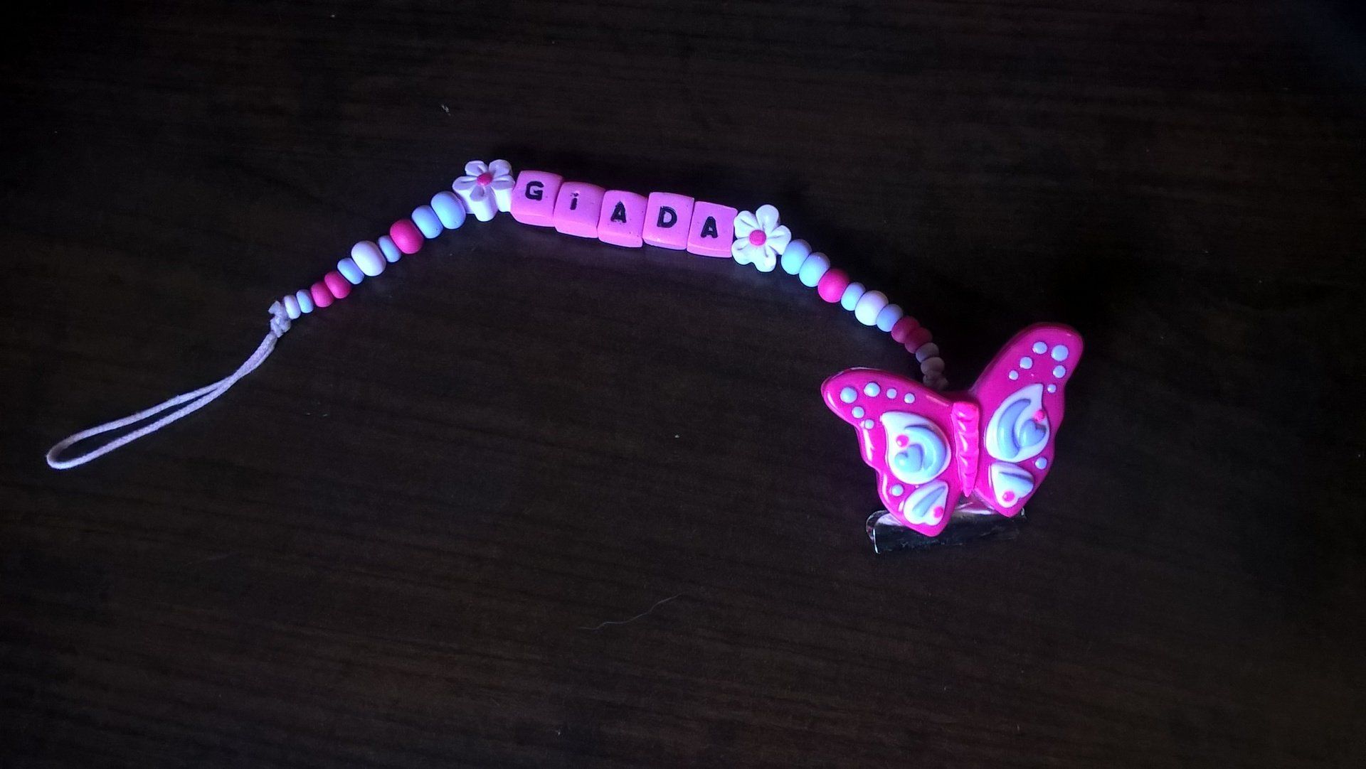 Catenelle portaciuccio lucecreazioni realizzate interamente a mano, dalla pinza alla catenella, letterine e tutti i componenti compresi