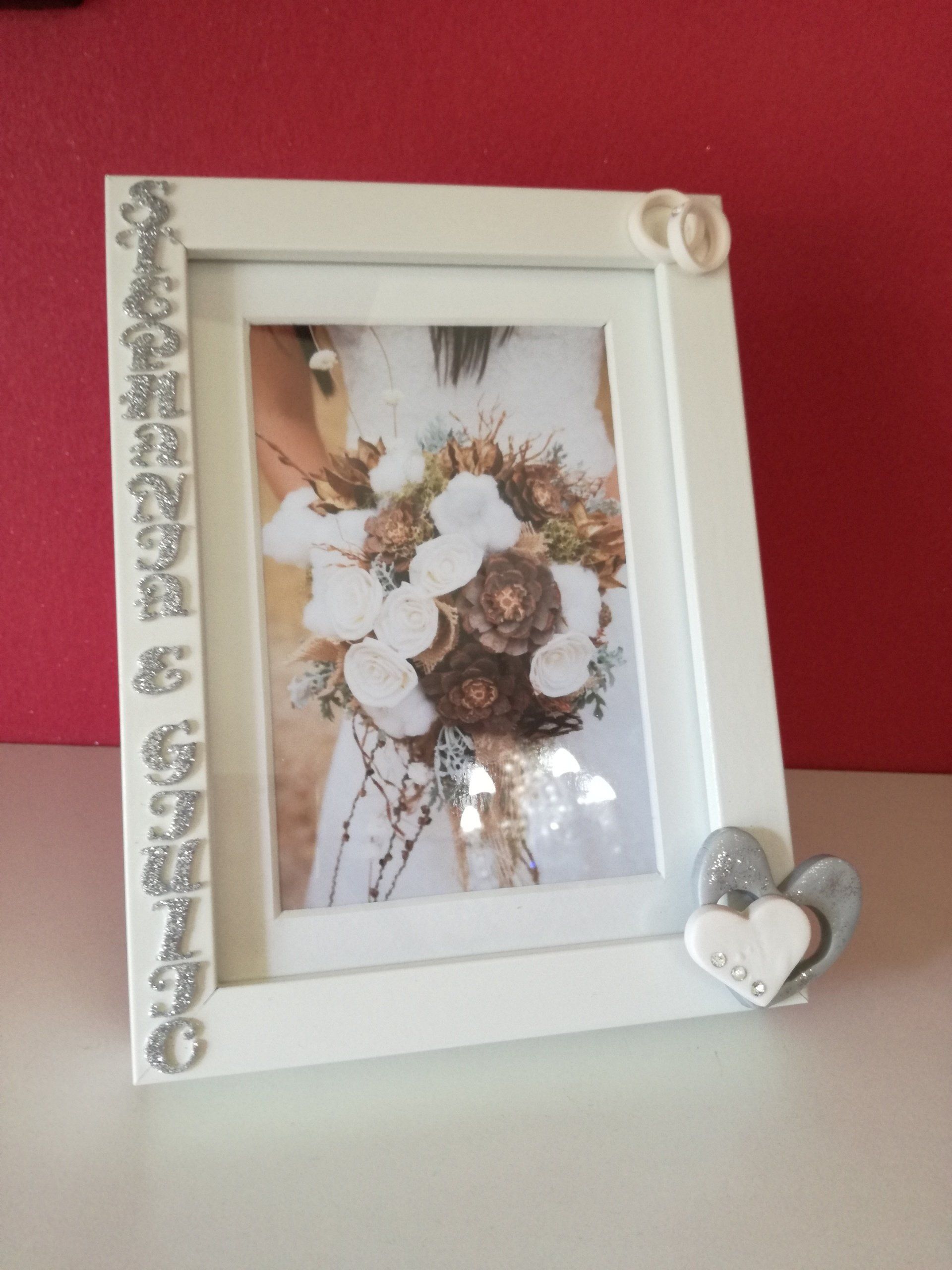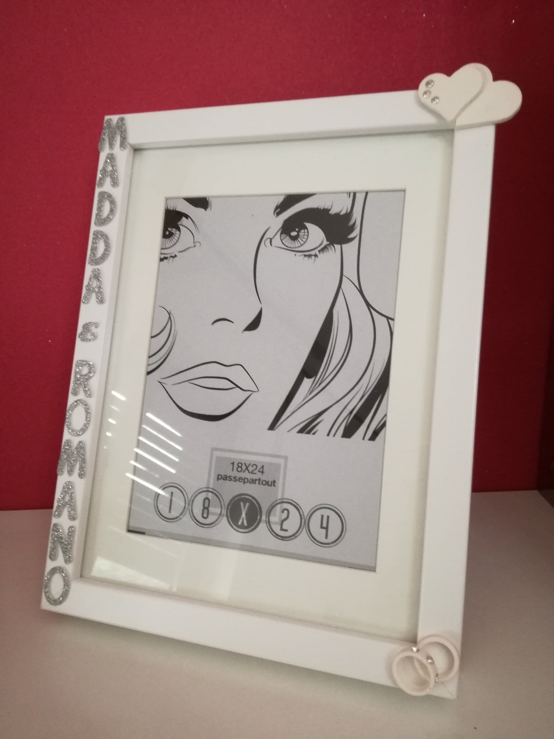 Cornici e quadri per matrimonio o anniversario personalizzati con decorazioni realizzate a mano su misura per te, ideali per un'idea regalo su misura per il grande giorno.