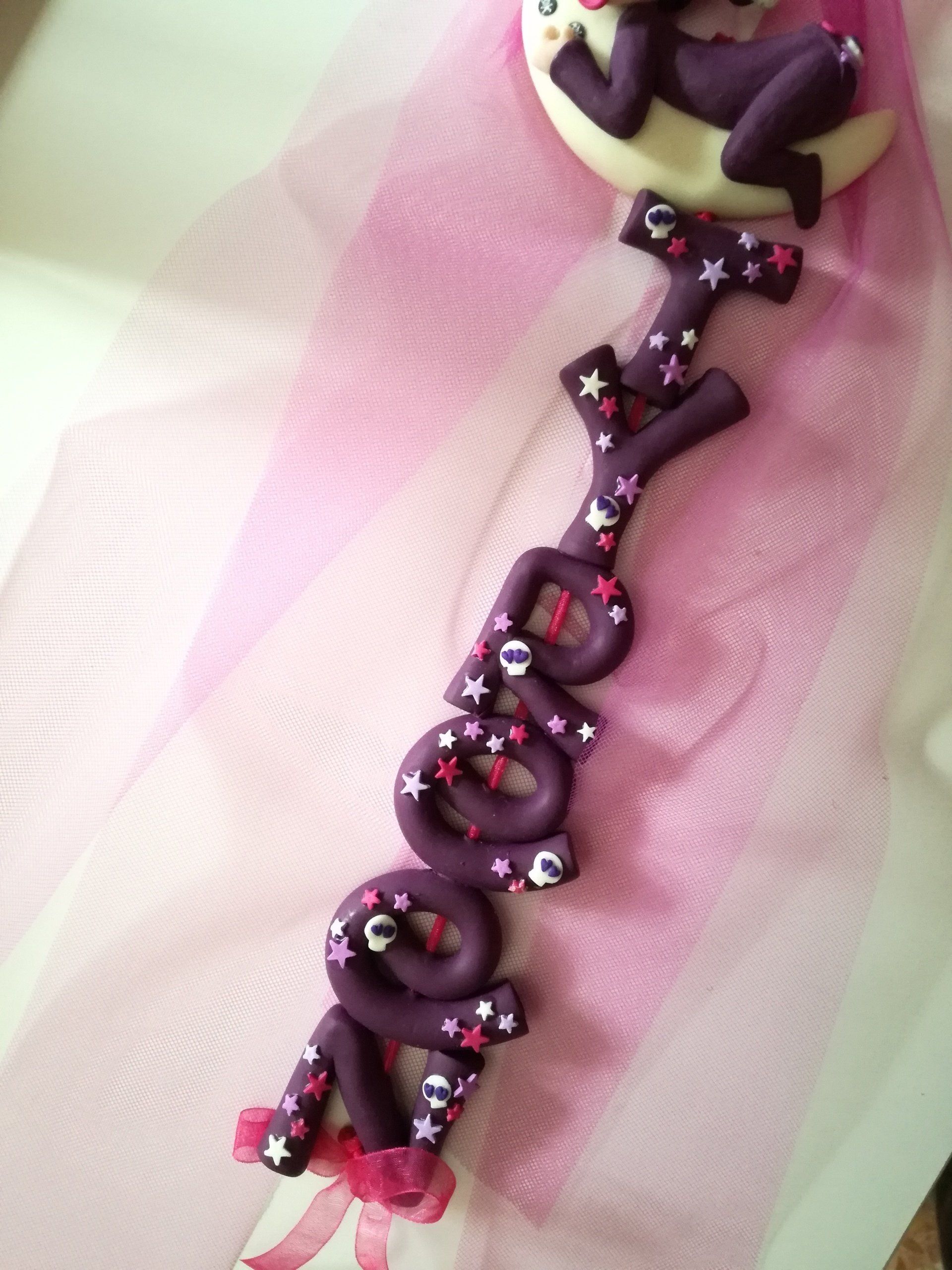 Studiato insieme e personalizzato per voi,come per tutte le altre creazioni è possibile realizzare parti fluorescenti al buio, come ad esempio le lune o qualche stellina