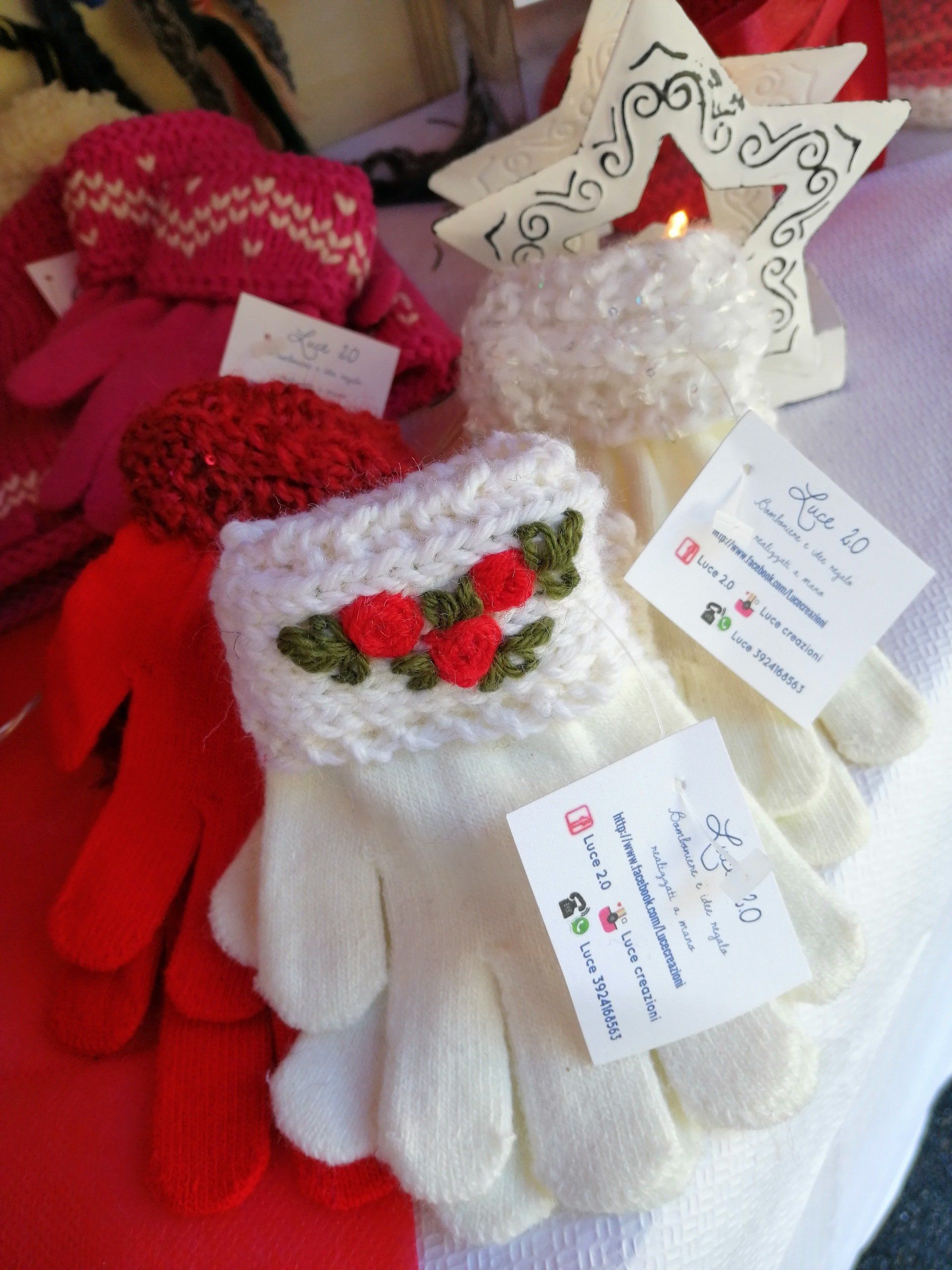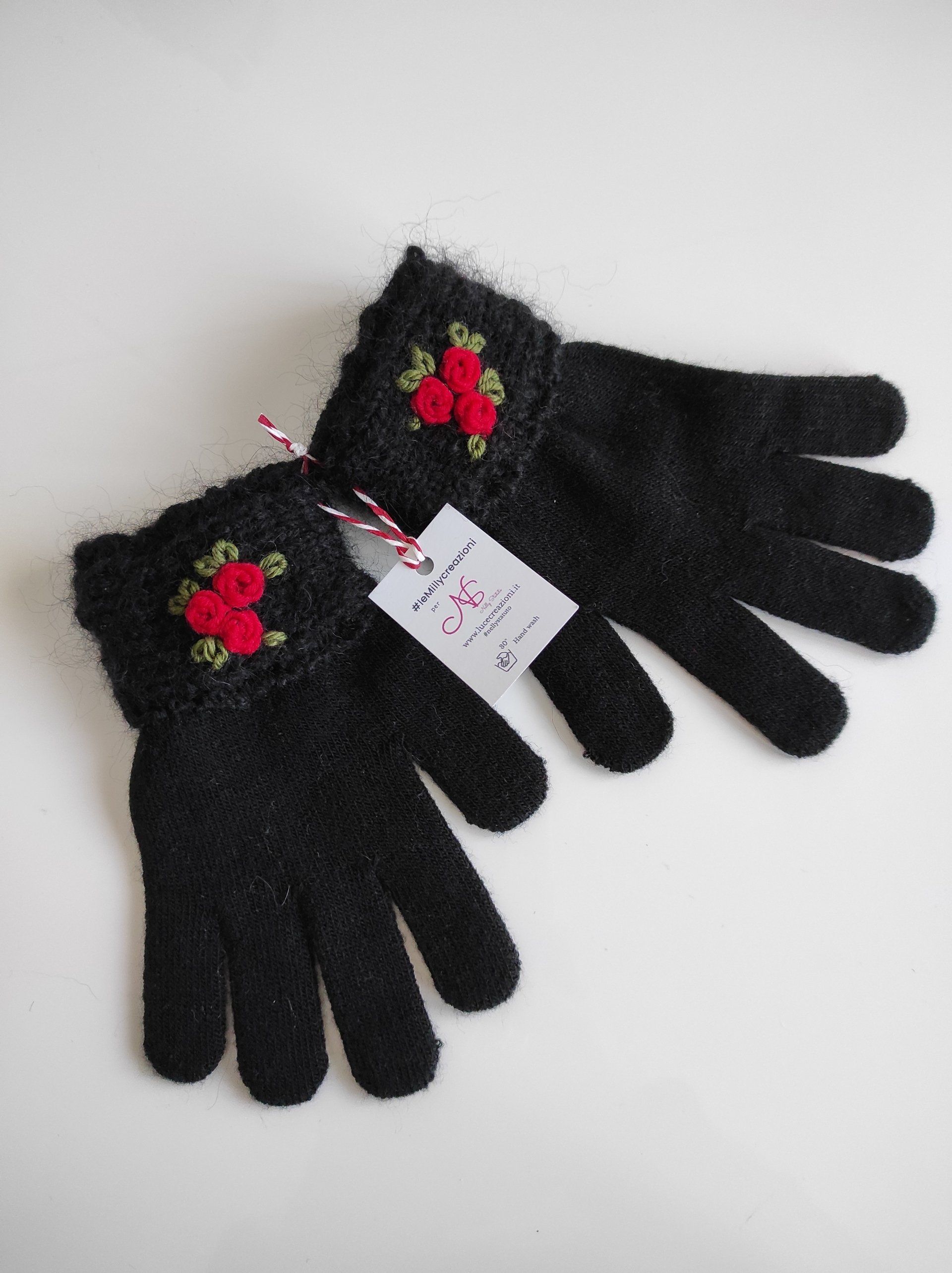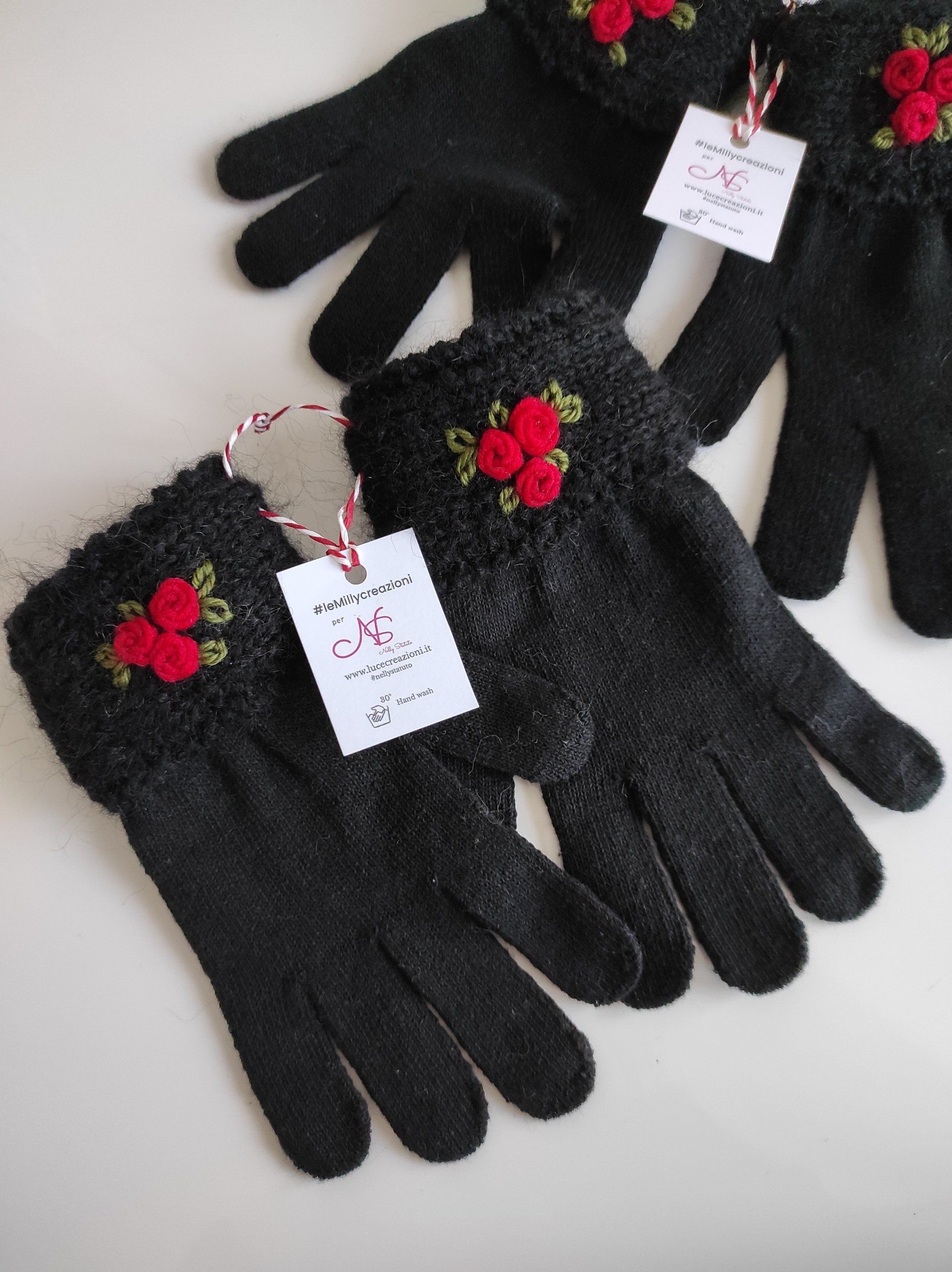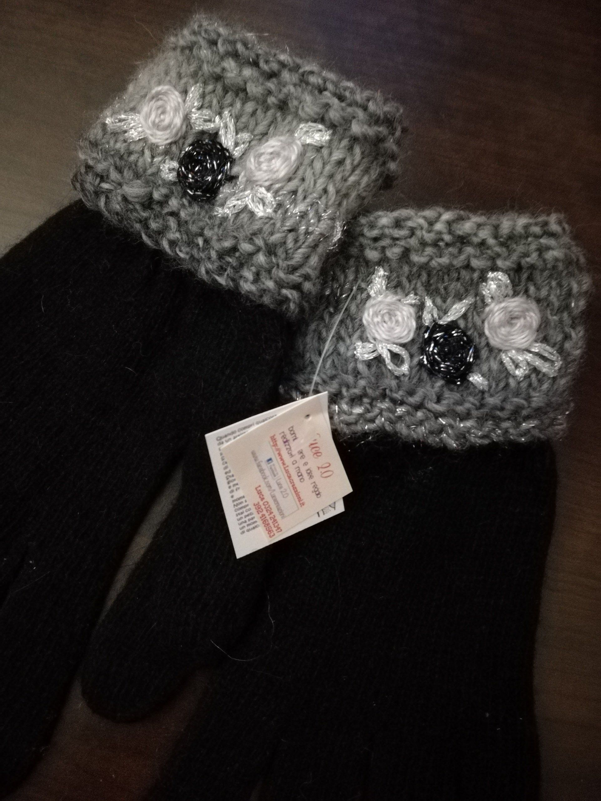 ButtonGuanti con broderie realizzata ai ferri con ricamo a punto maglia