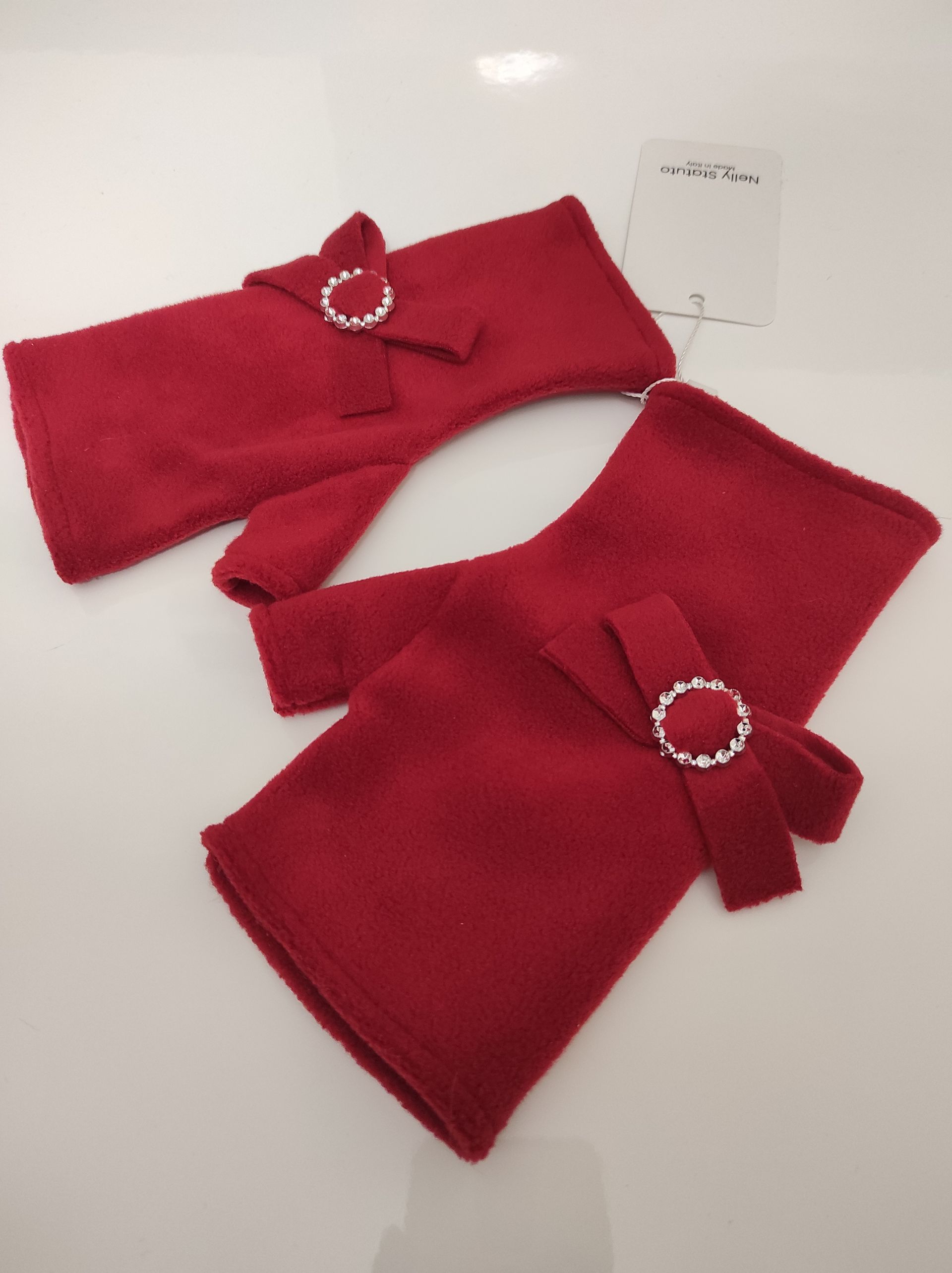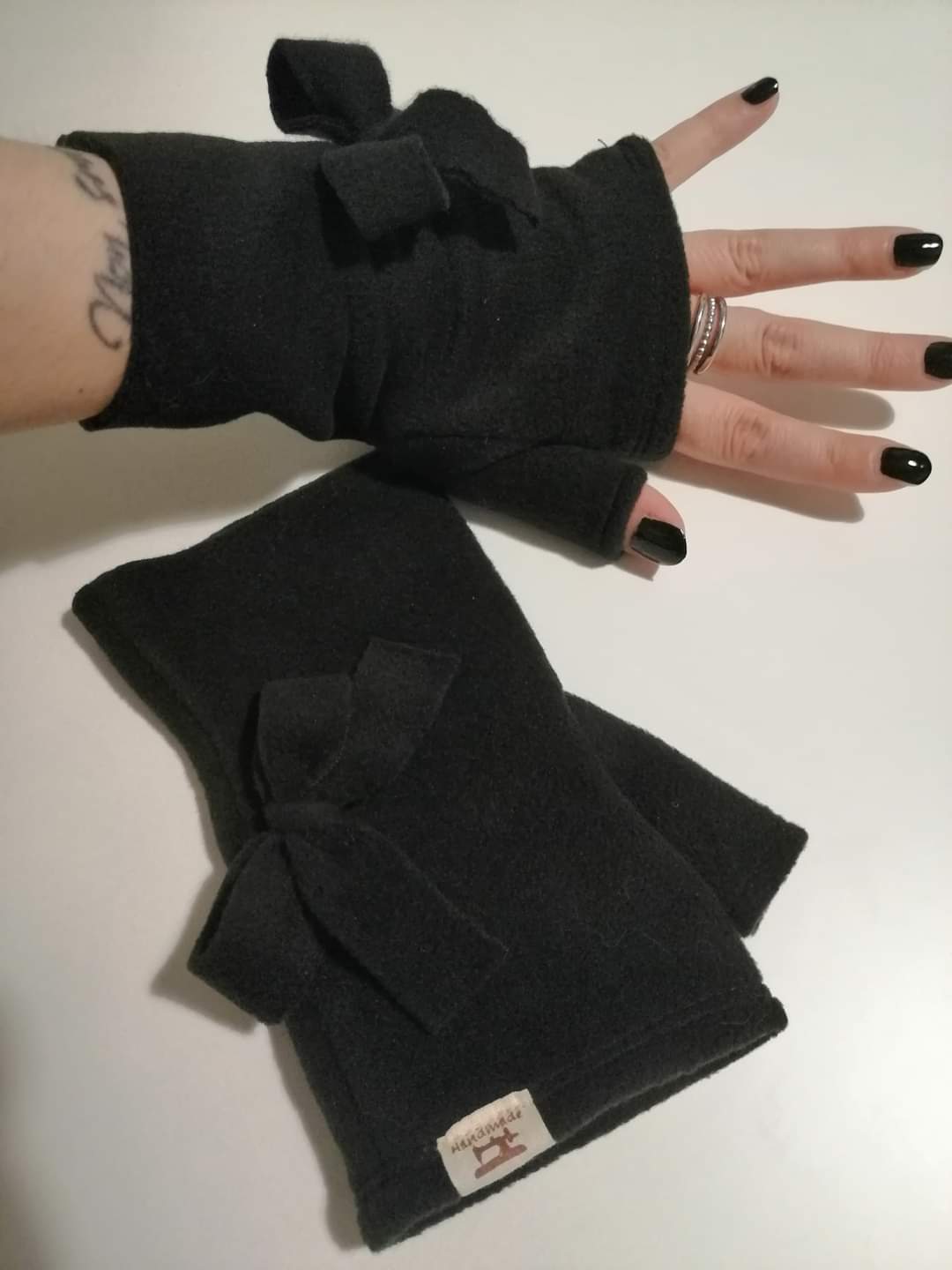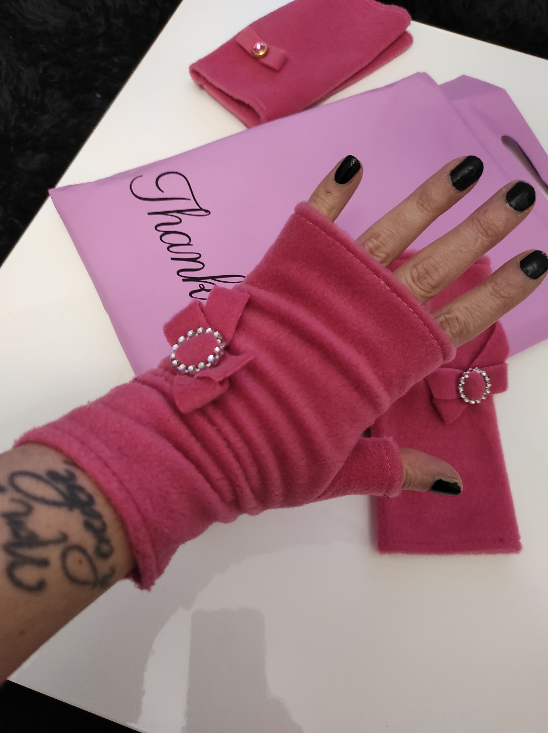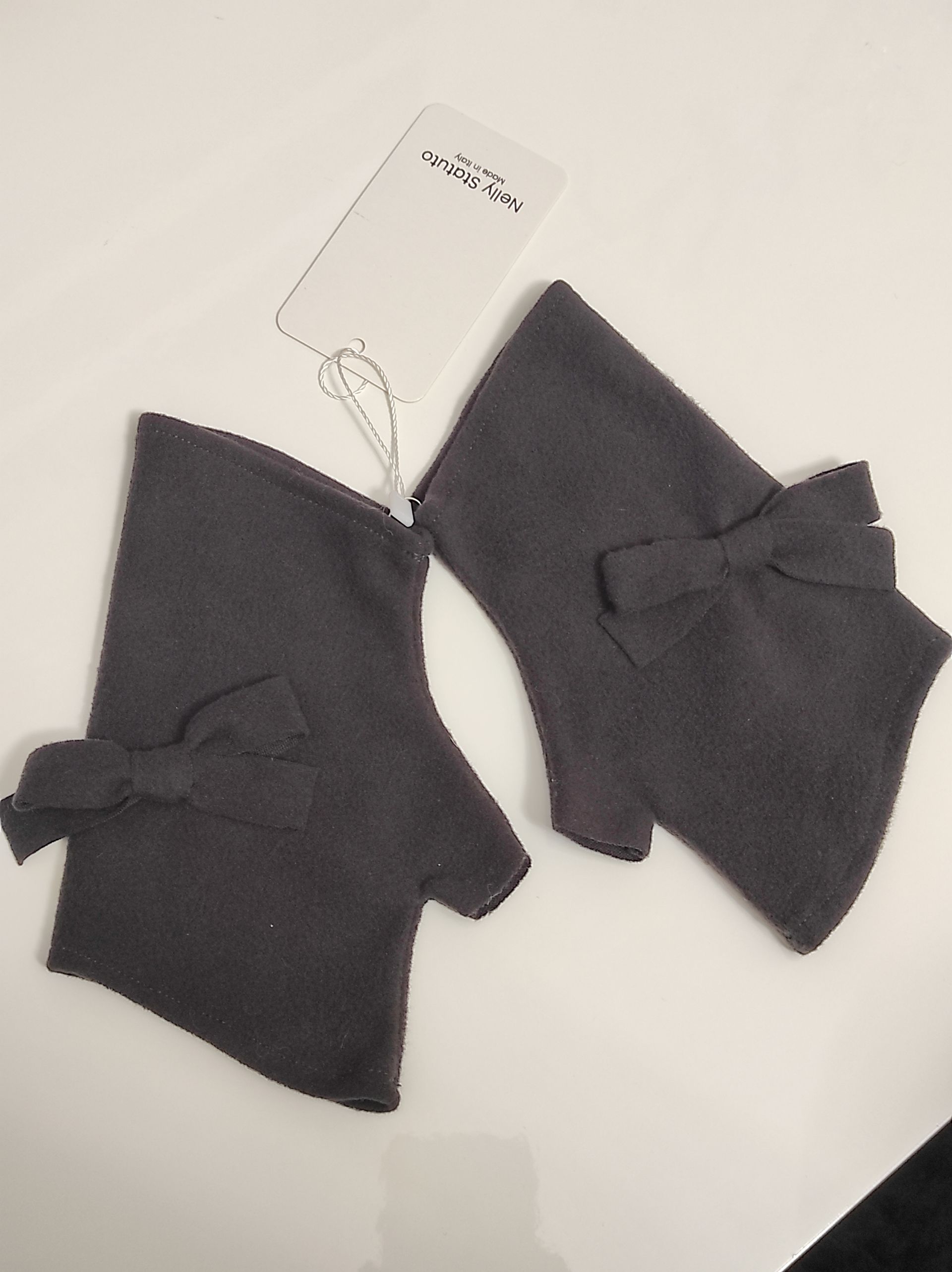 ButtonManicotti realizzati in soffice e caldo pile con fiocchetto e bottoncino gioiello