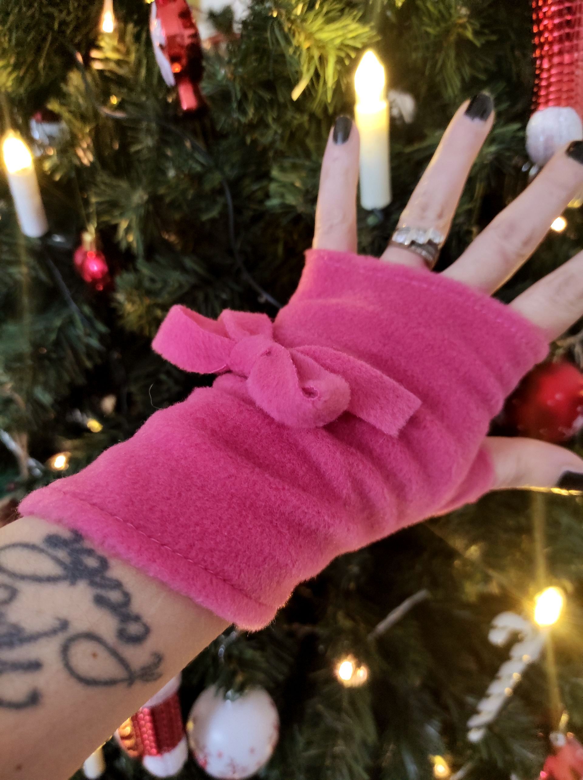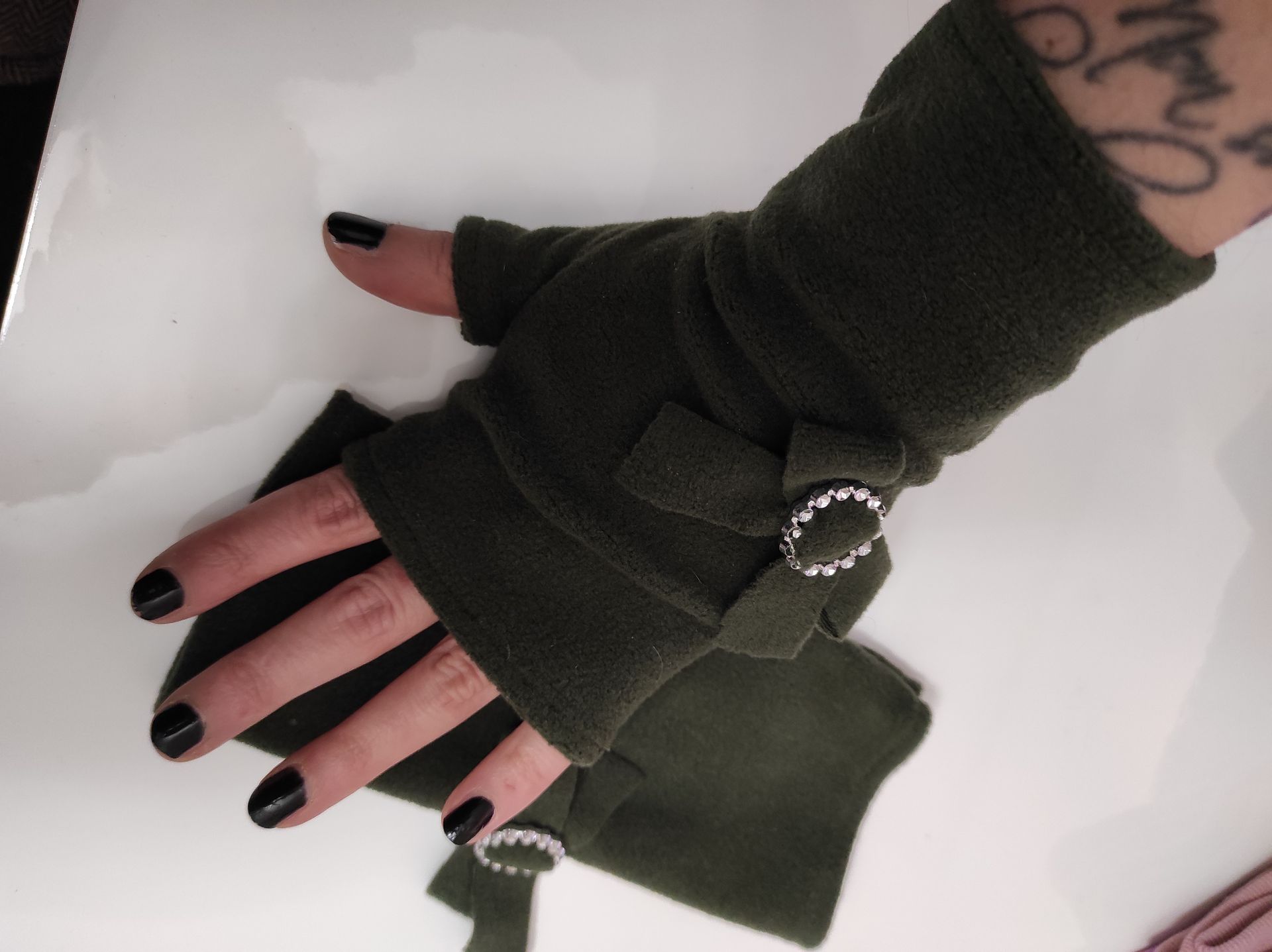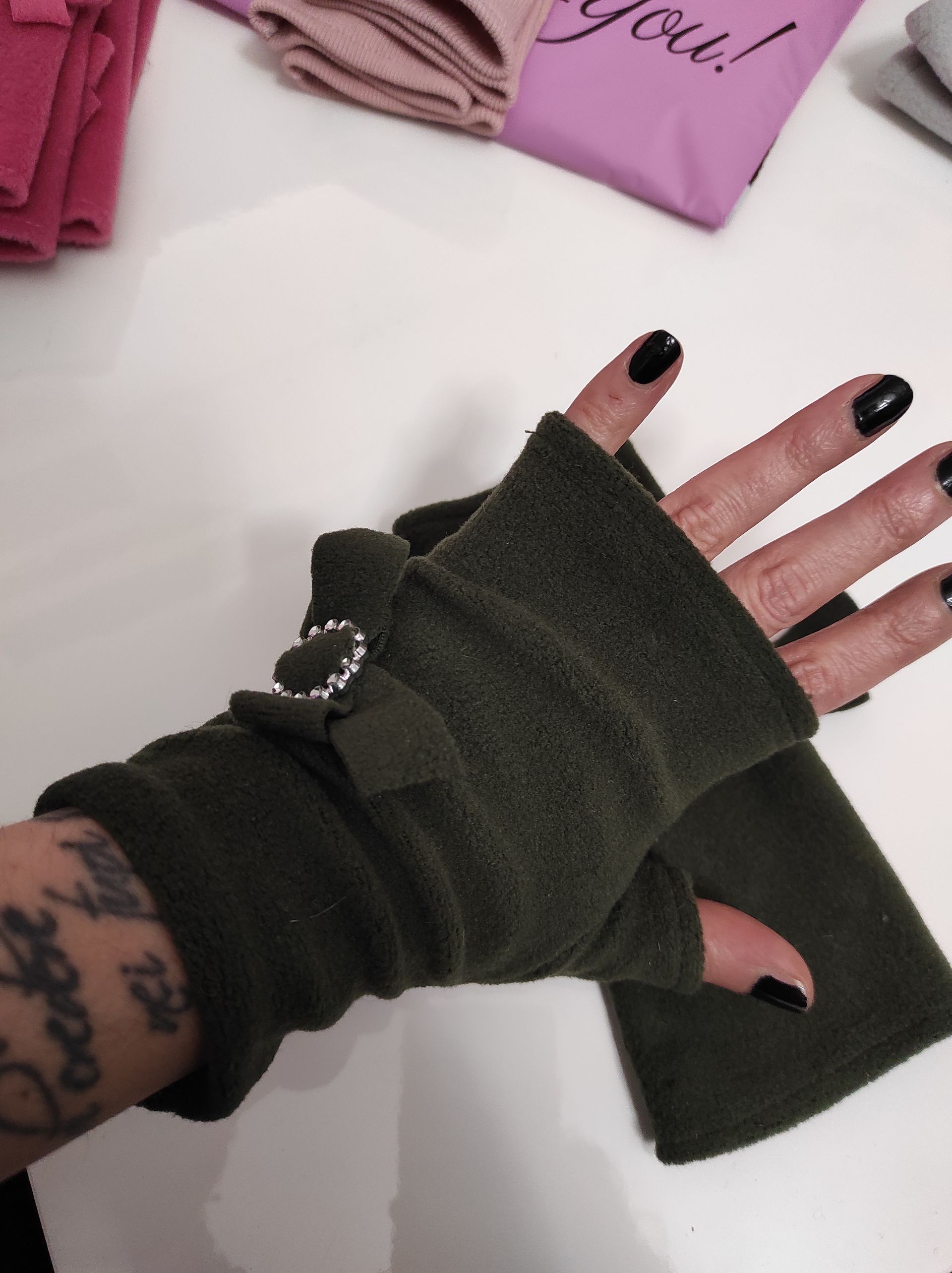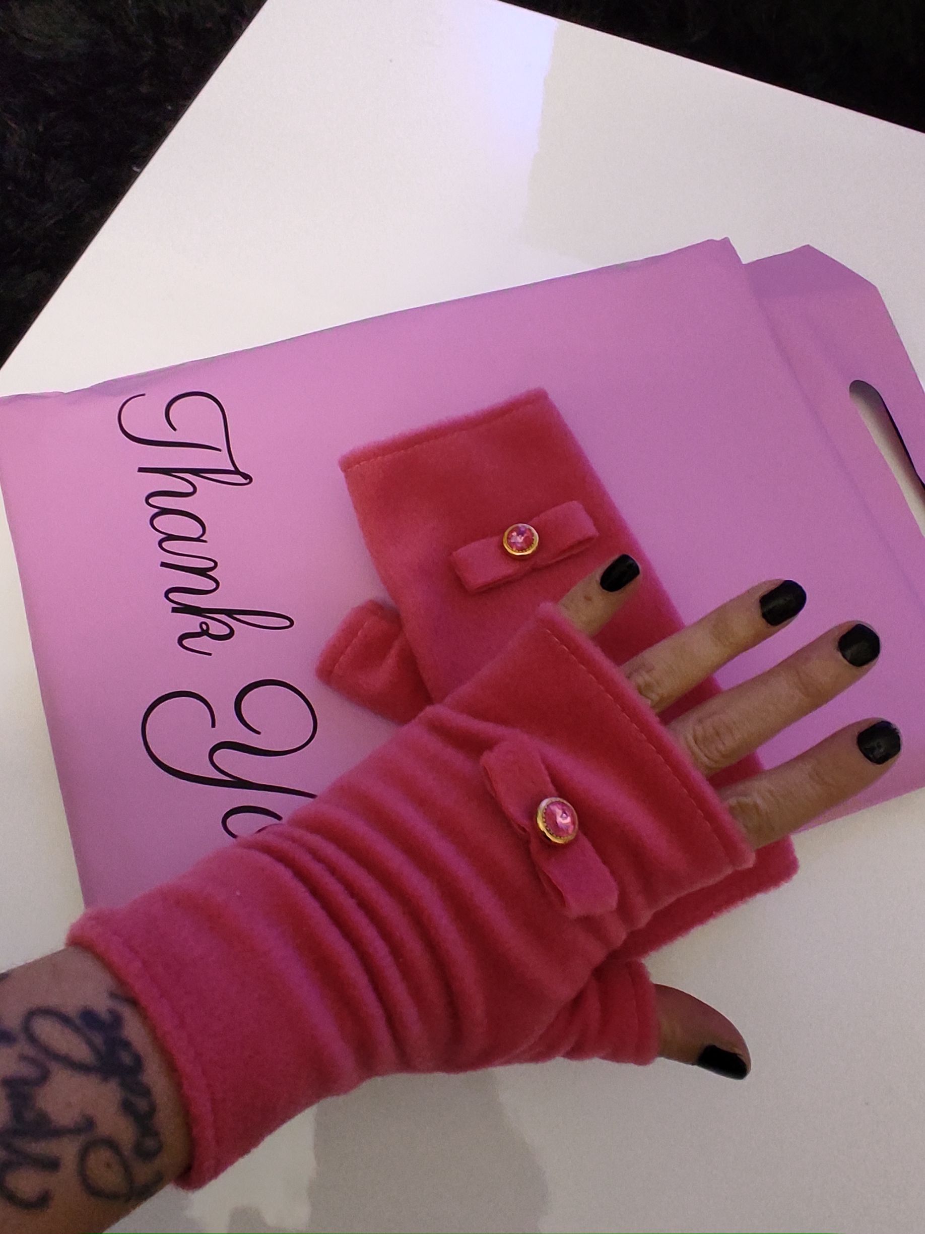ButtonManicotti realizzati in soffice e caldo pile con fiocchetto e bottoncino gioiello