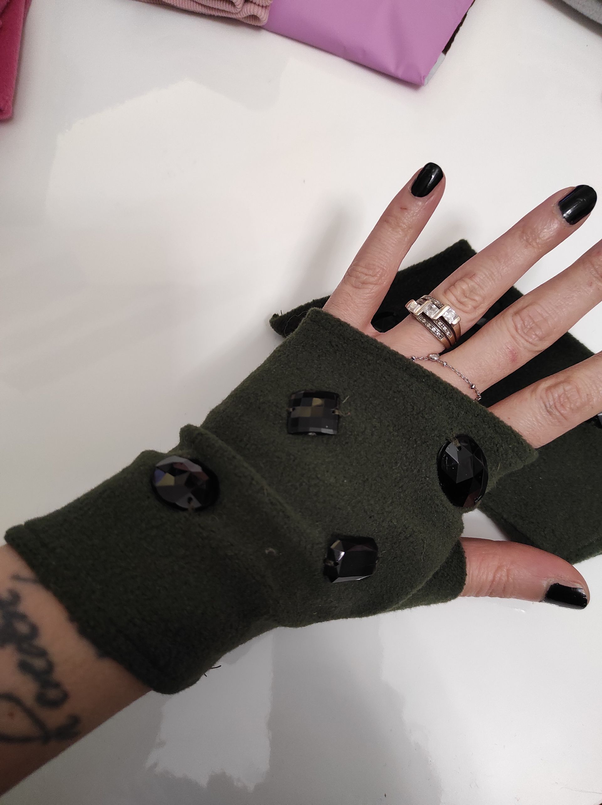 ButtonGuanti senza dita con broderie realizzata ai ferri