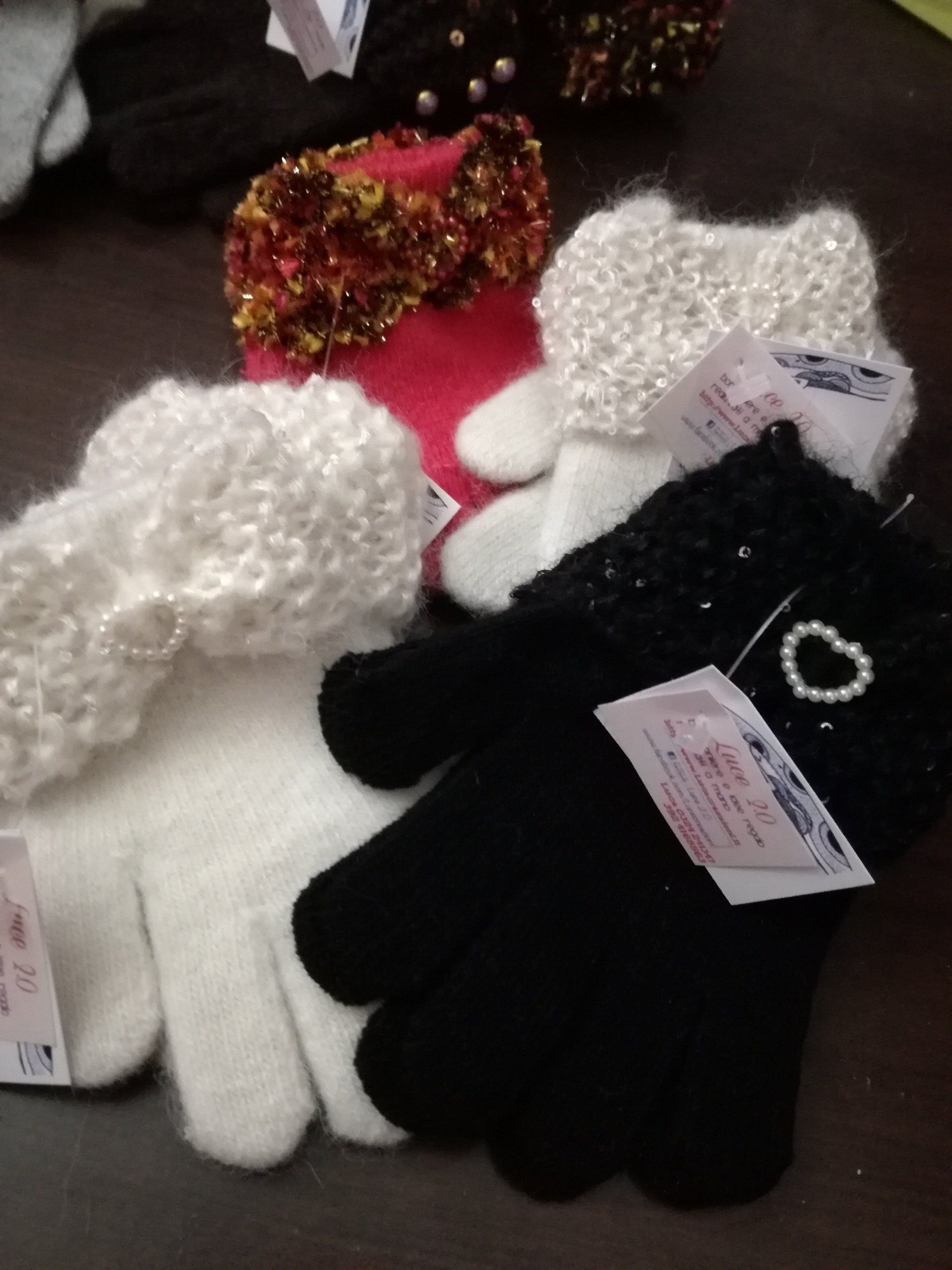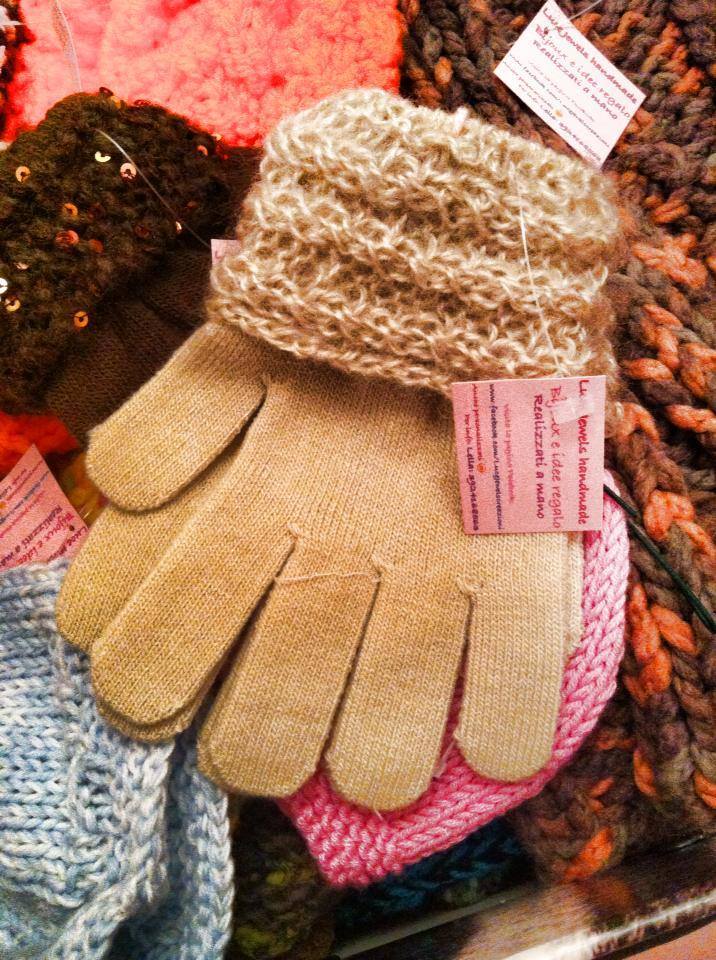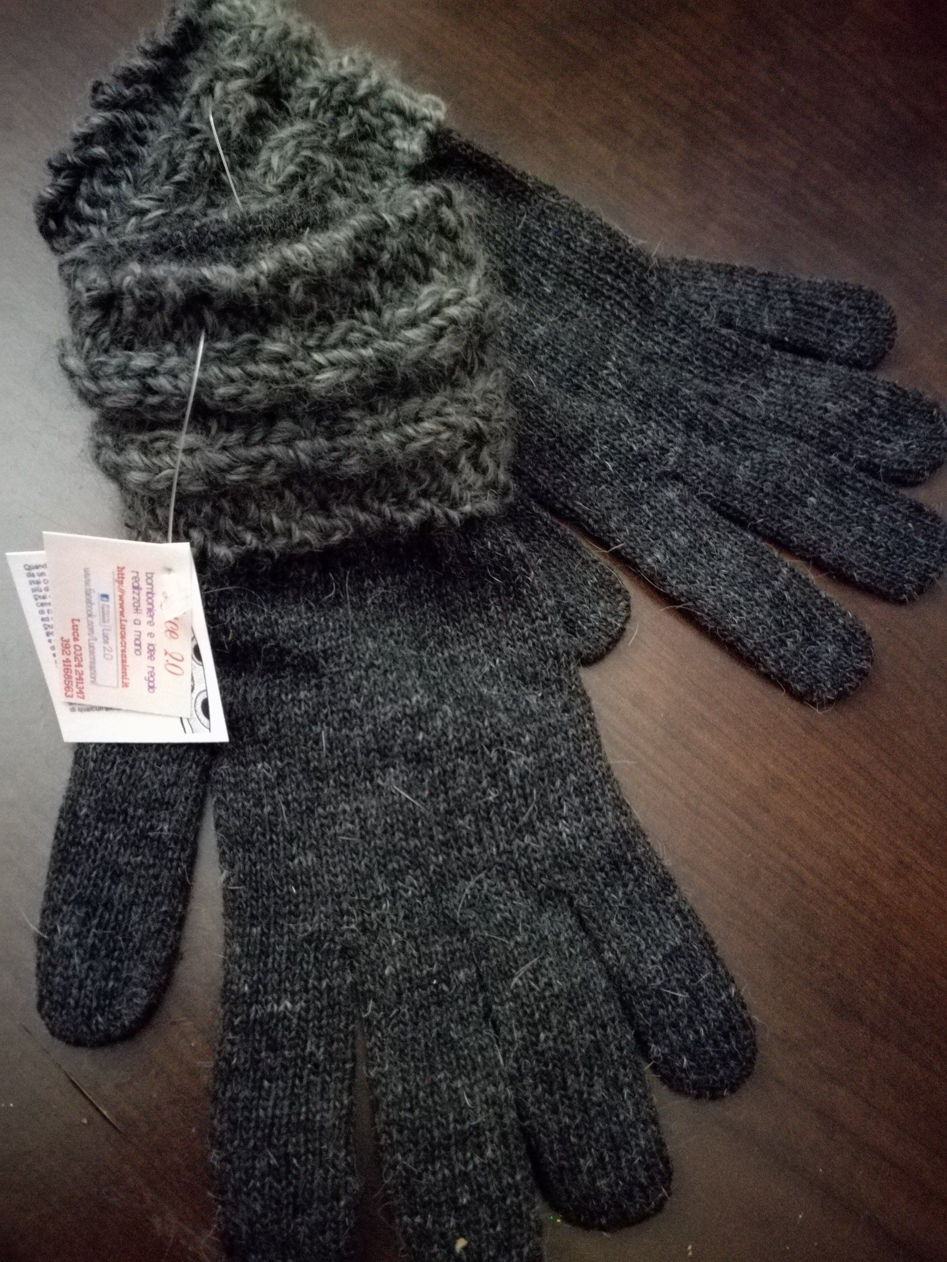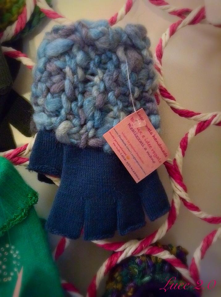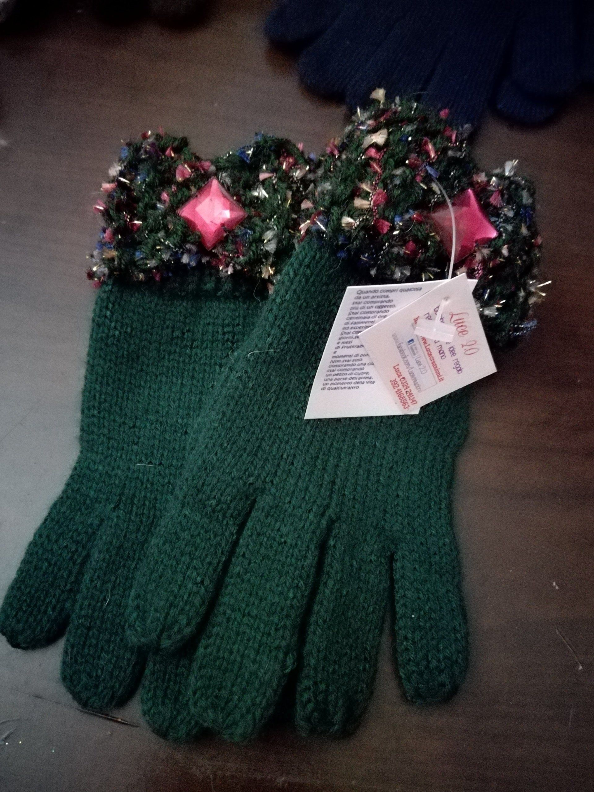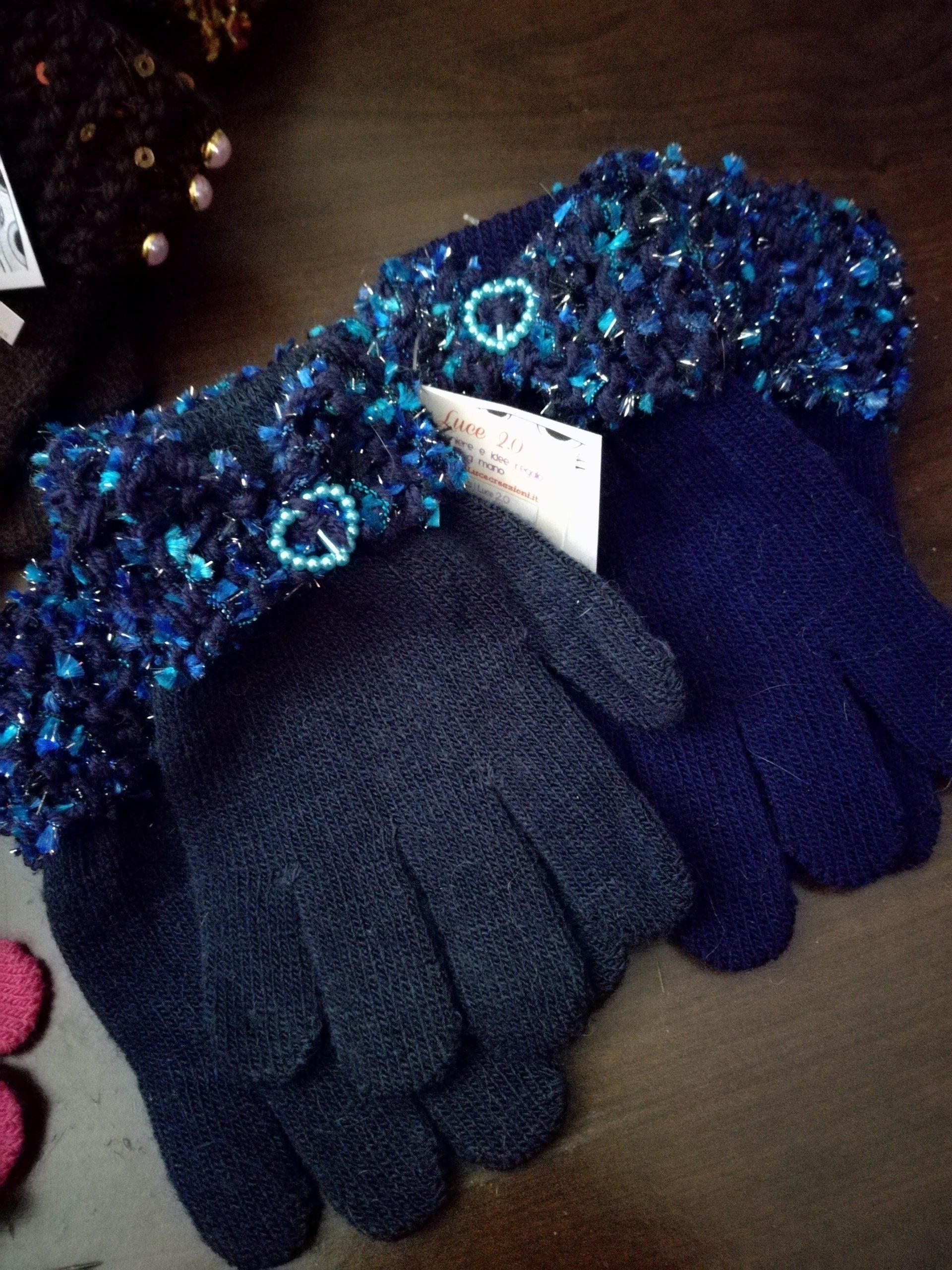 Guanti, muffole e manicotti rifiniti con guarnizioni realizzate ai ferri o uncinetto o cuciti in tessuto interamente realizzati a mano