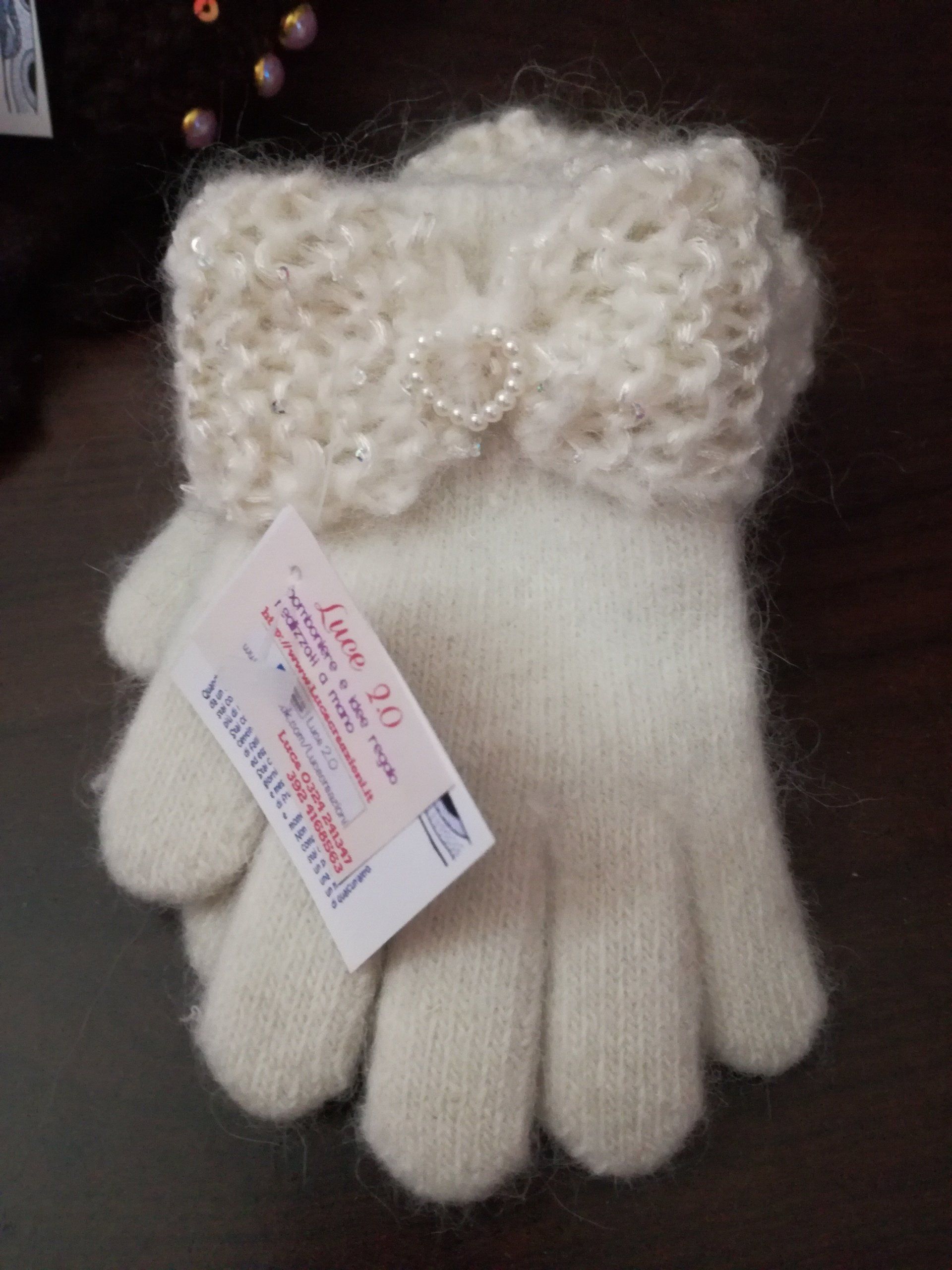 ButtonGuanti bimba con broderie realizzata ai ferri in lana mohair e lamè decoratii con un fiorellino realizzato all'uncinetto prendendocosì le sembianze di un anellino
