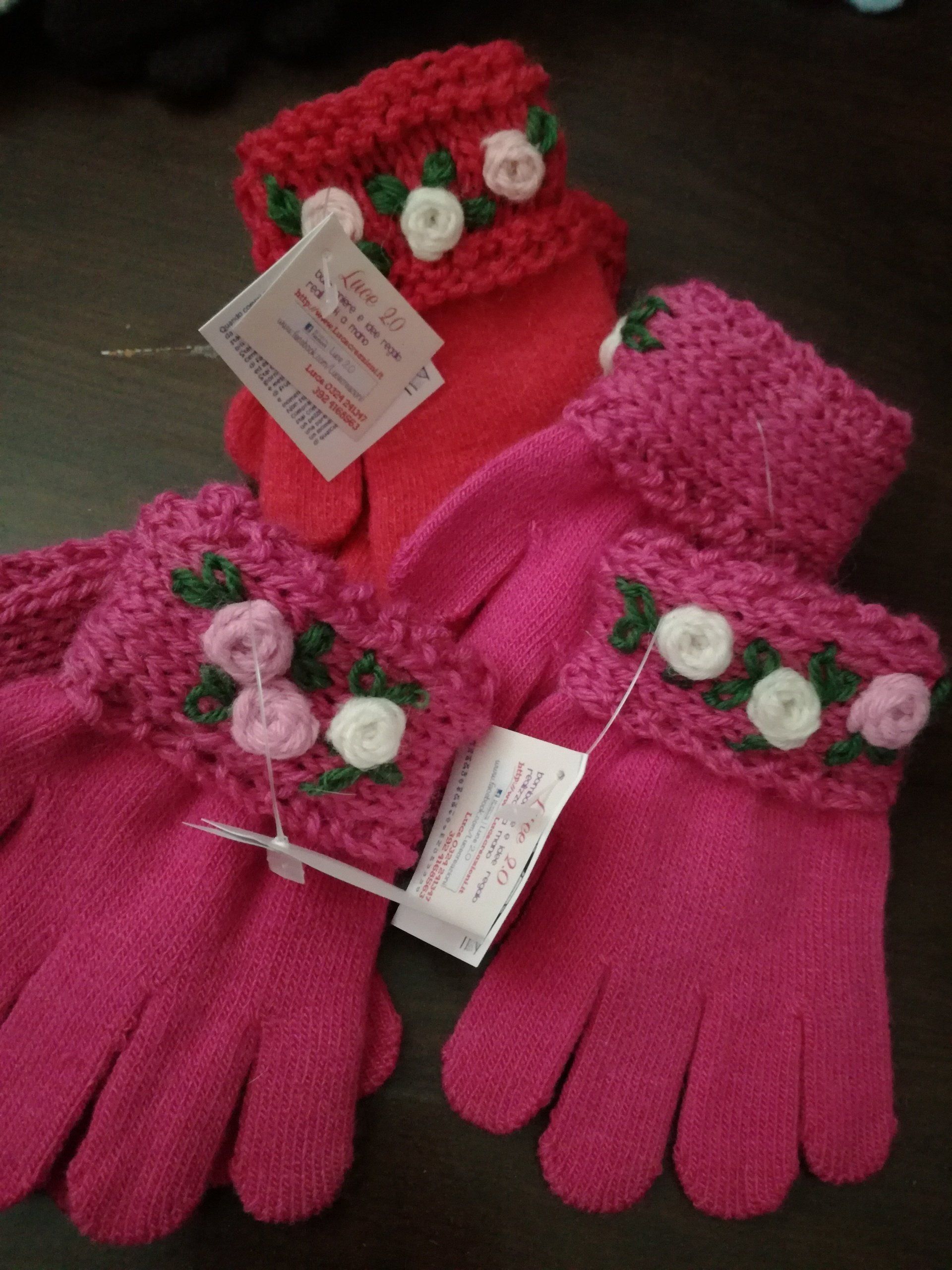 Guanti bimba con broderie realizzata ai ferri con deliziose roselline ricamate a mano