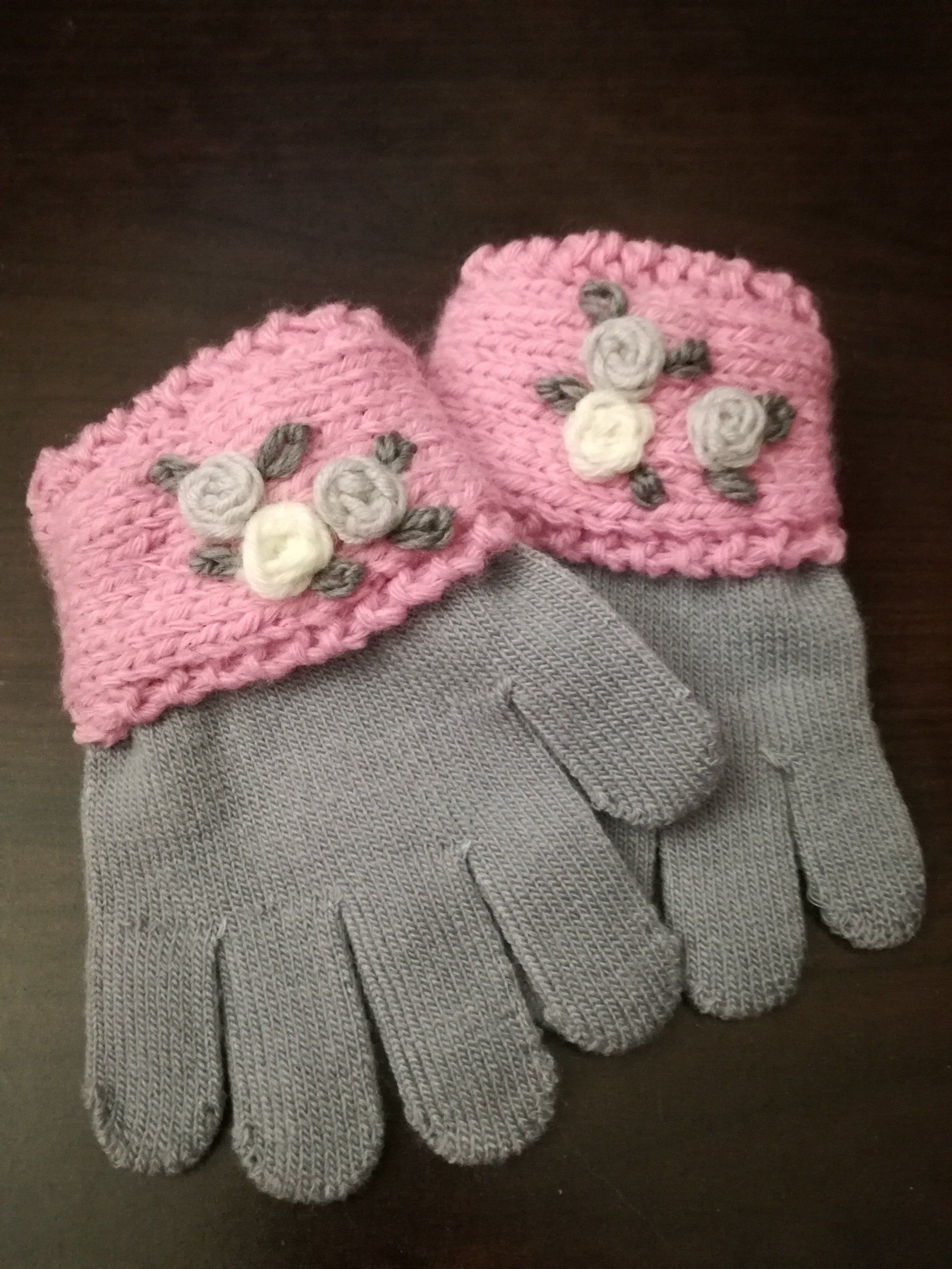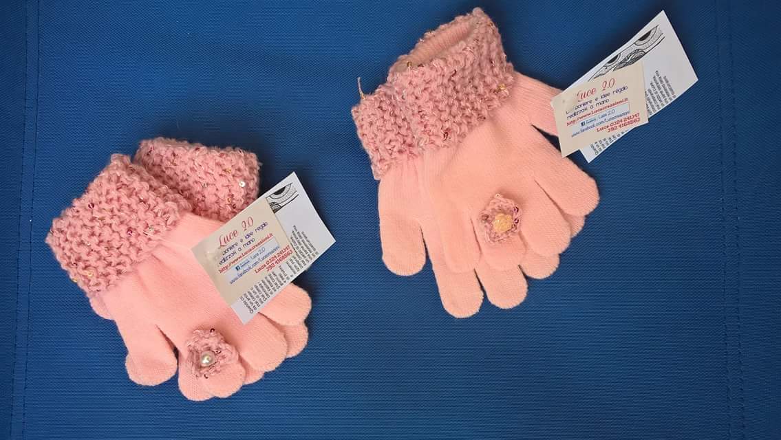 ButtonGuanti bimba con broderie realizzata ai ferri e bottoncini