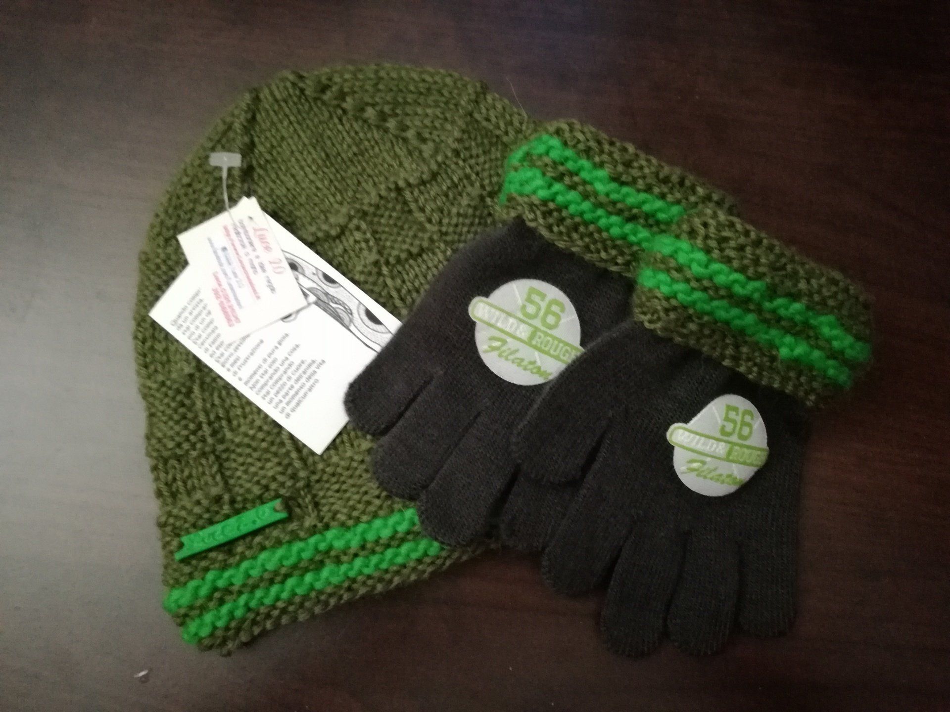 ButtonGuanti bimbo con broderie realizzata ai ferri e berretto abbinato