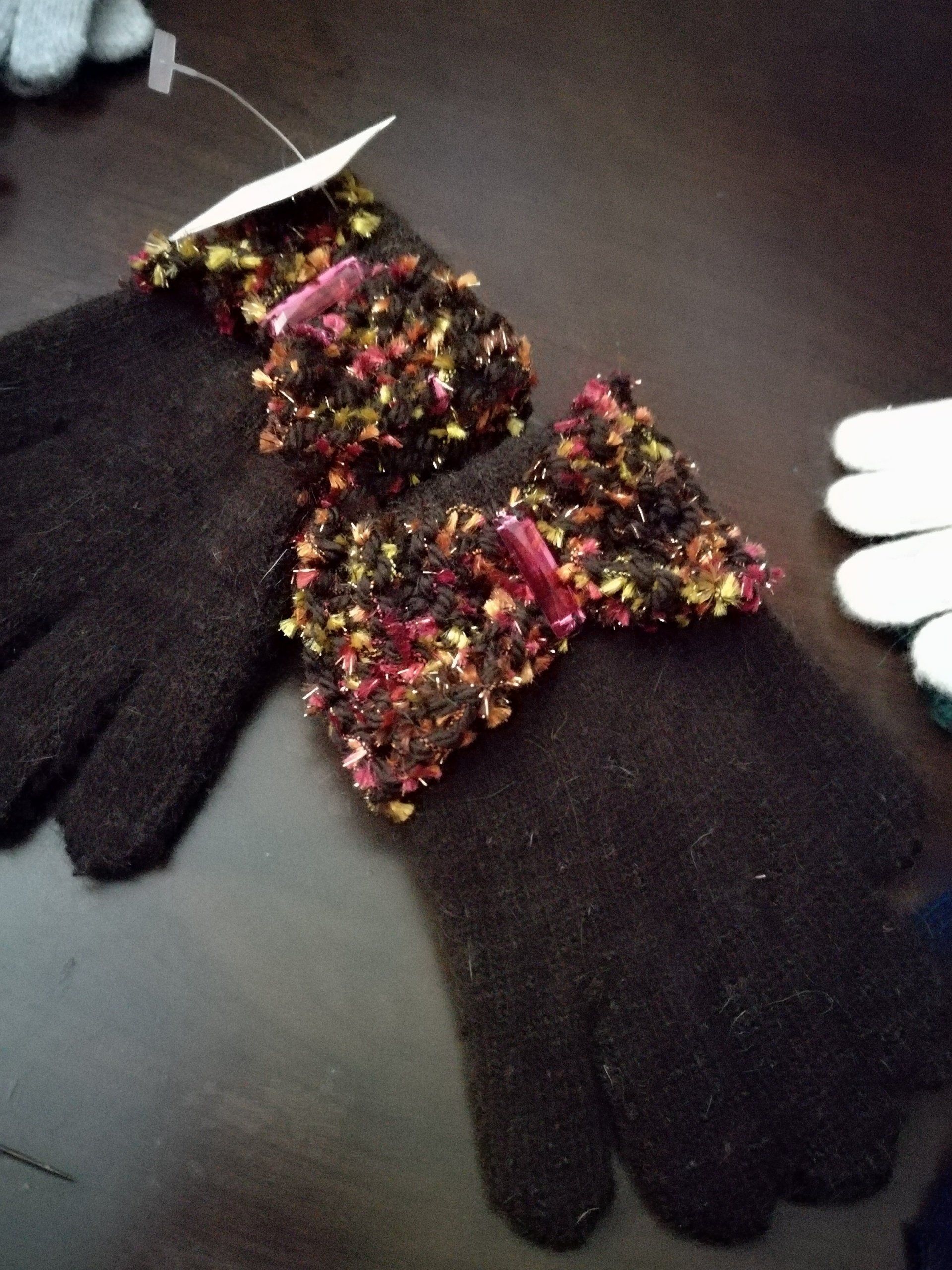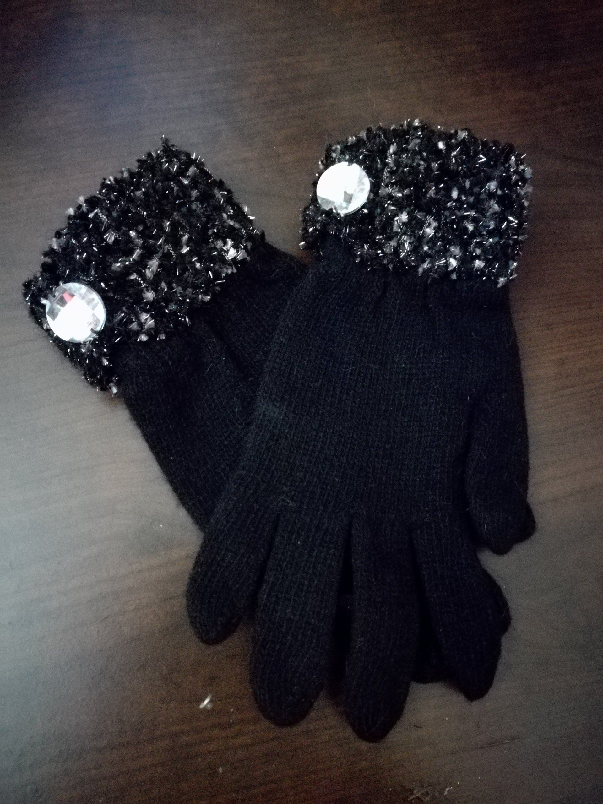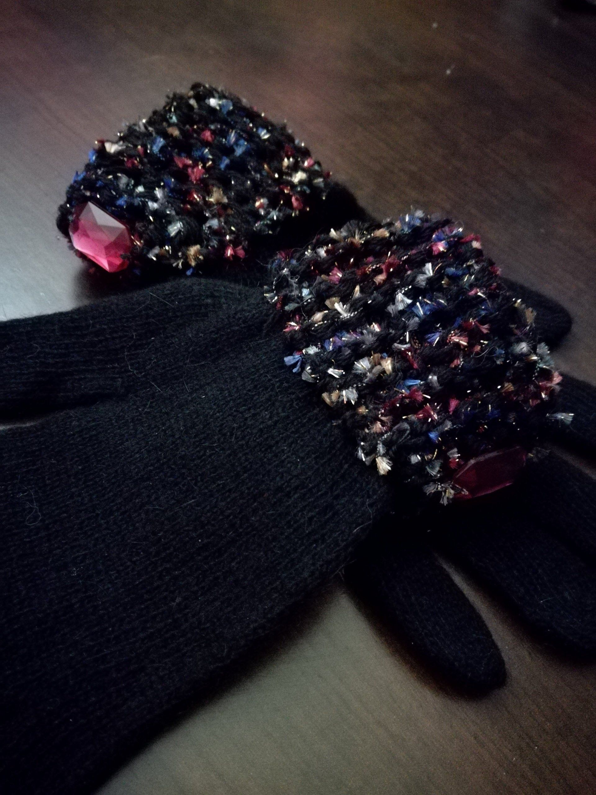 ButtonGuanti con broderie realizzata ai ferri in mohair e paillettes