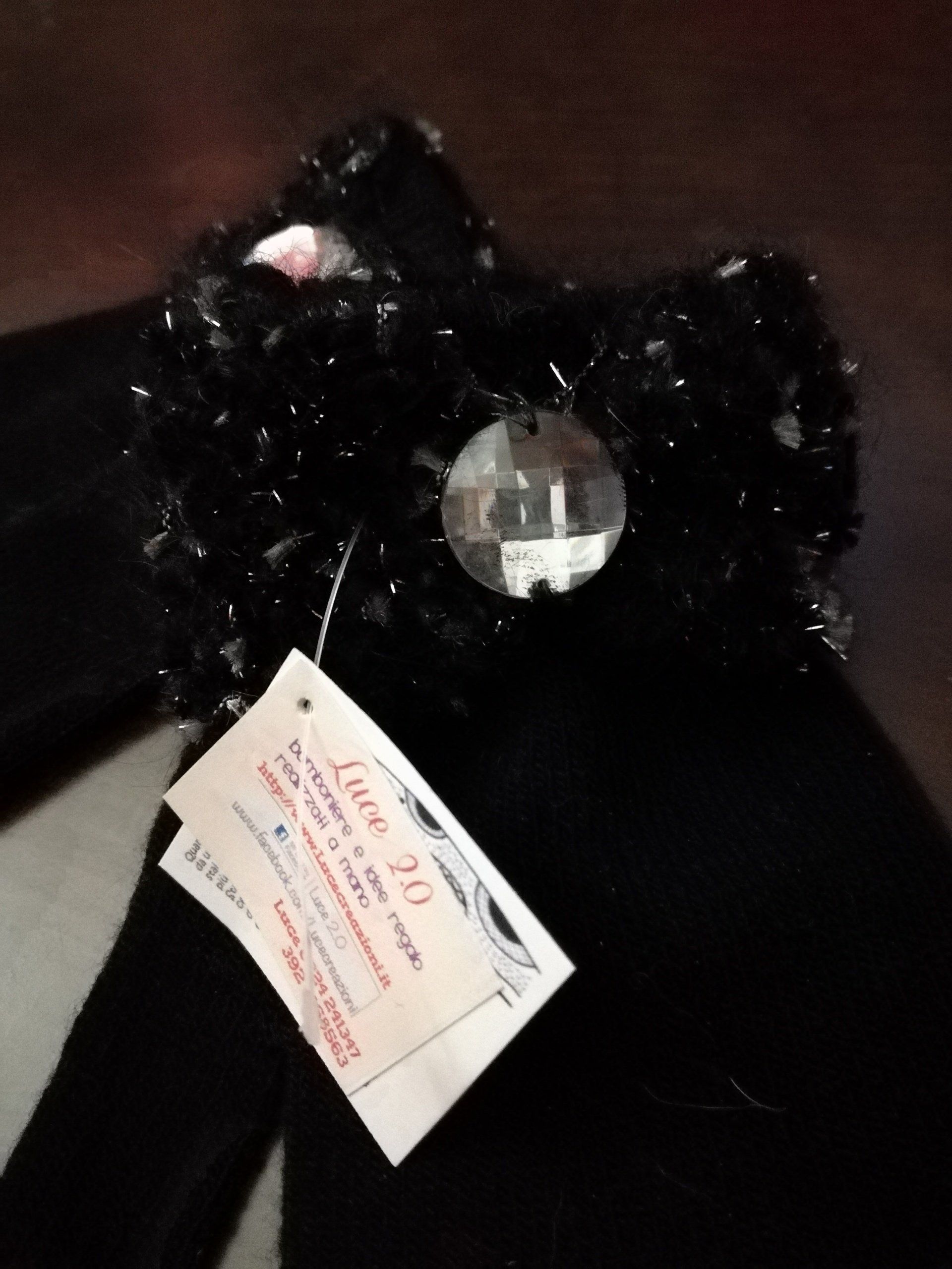 ButtonGuanti con broderie realizzata ai ferri in mohair e lamè decorata con cristalli acrilici