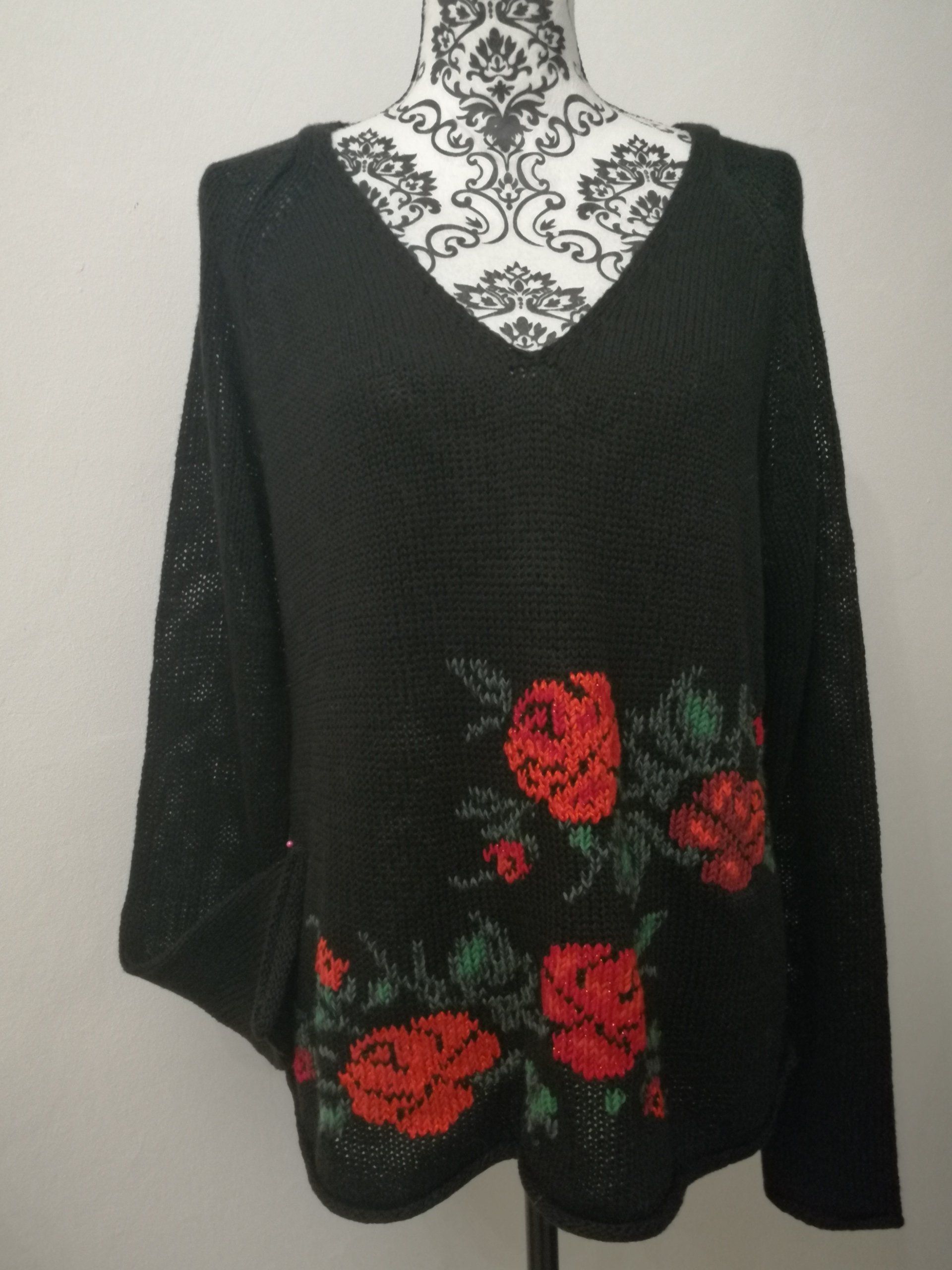 ButtonMaglia in lana con rose ricamate a punto maglia