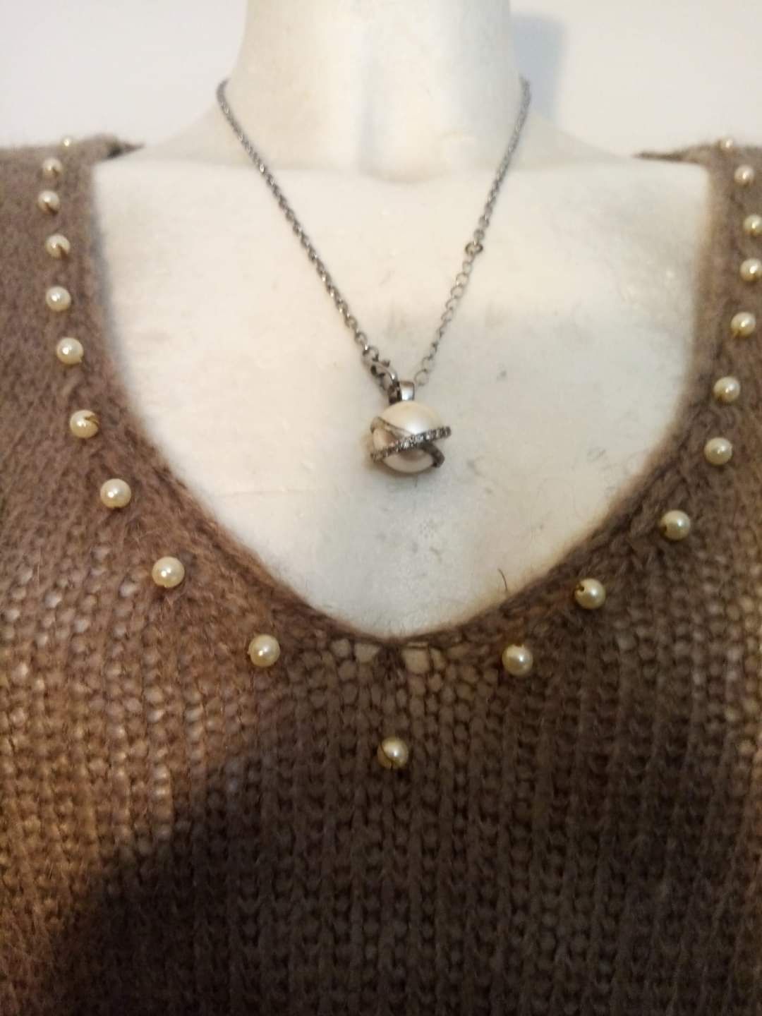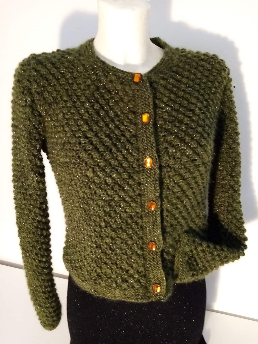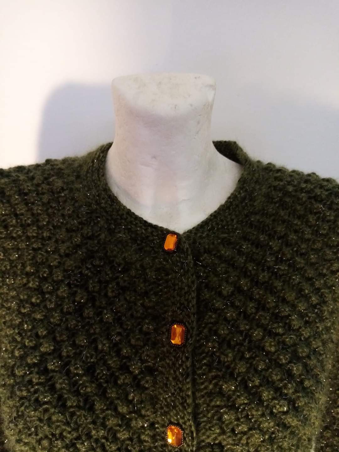 ButtonGolfino in lana con filo lamè, realizzato ai ferri, rifinito con bottoni gioiello