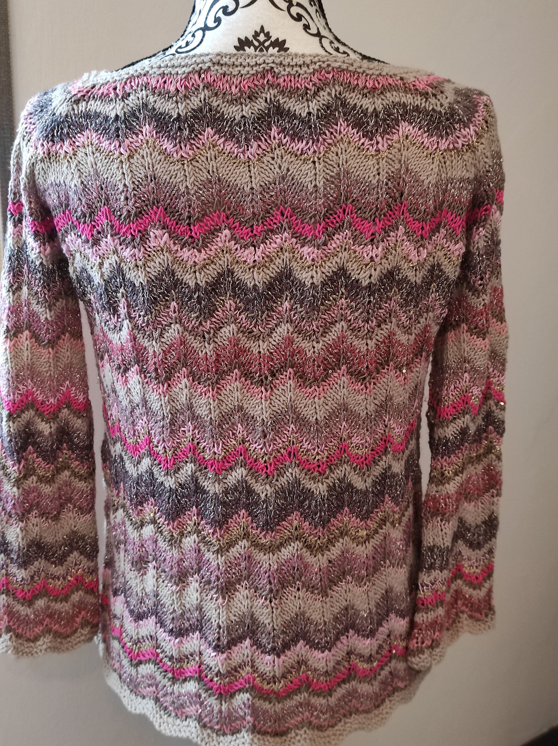 Maglia in cotone con lamé e paillettes lavorata ai ferri con motivo a onde