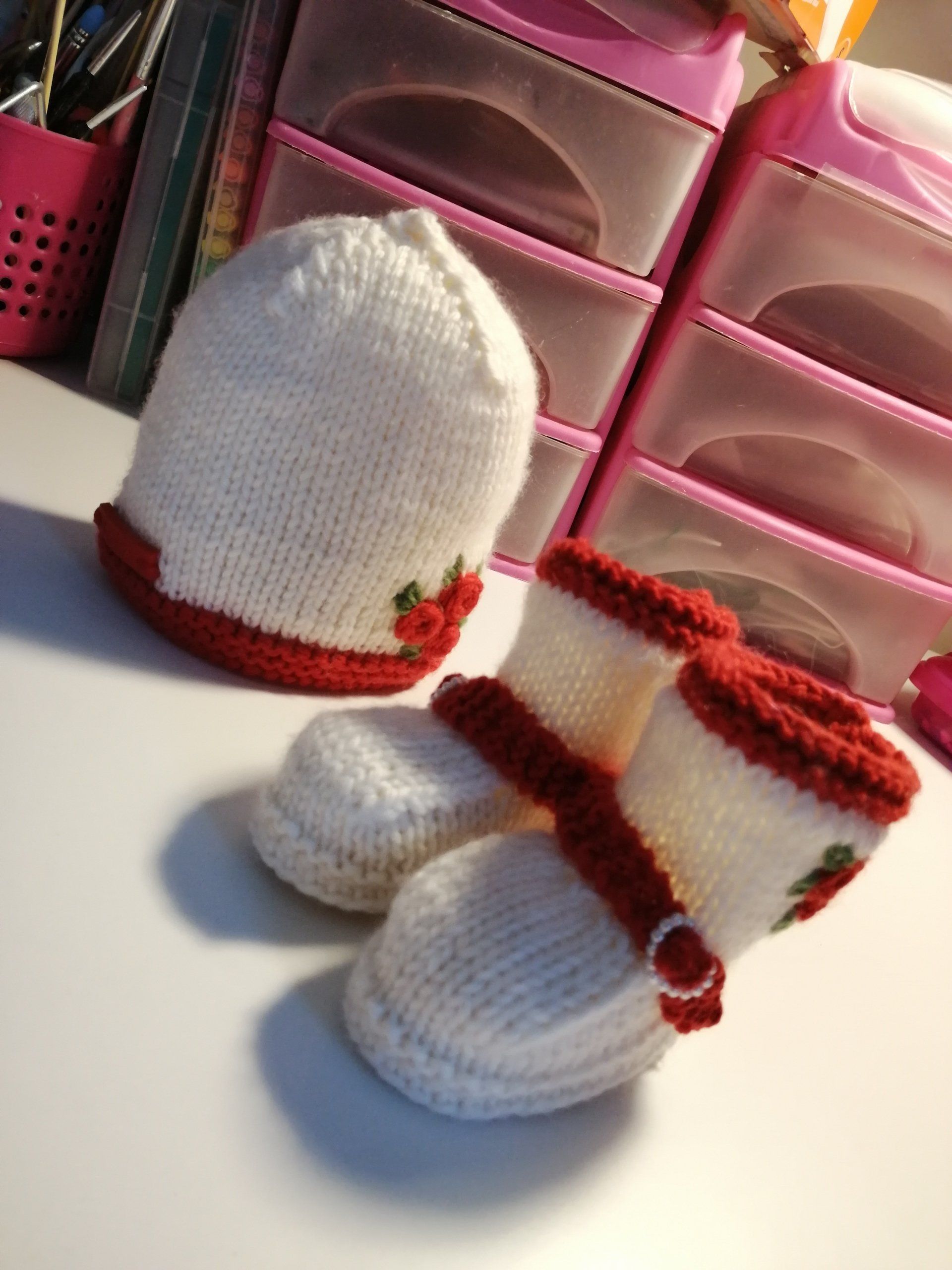 Il tutto è disponibile anche in coordinati, ad esempio golfino, berretto, scarpine abbinati o in set unito a catenella portaciuccio, portafoto, e composto a vostro gusto in base alle occasioni.